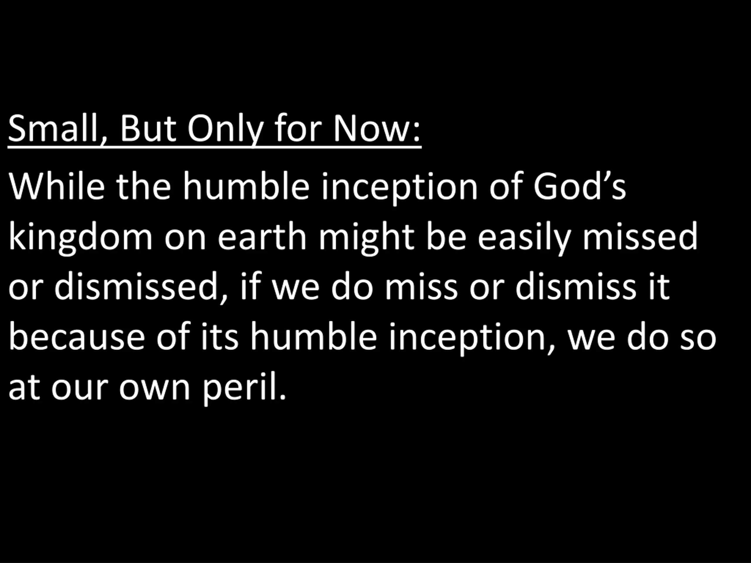 Small, But Only for Now: While the humble inception of God s kingdom on earth might be easily missed or dismissed, if we do miss or dismiss it because of its humble inception, we do so at our own peril.
