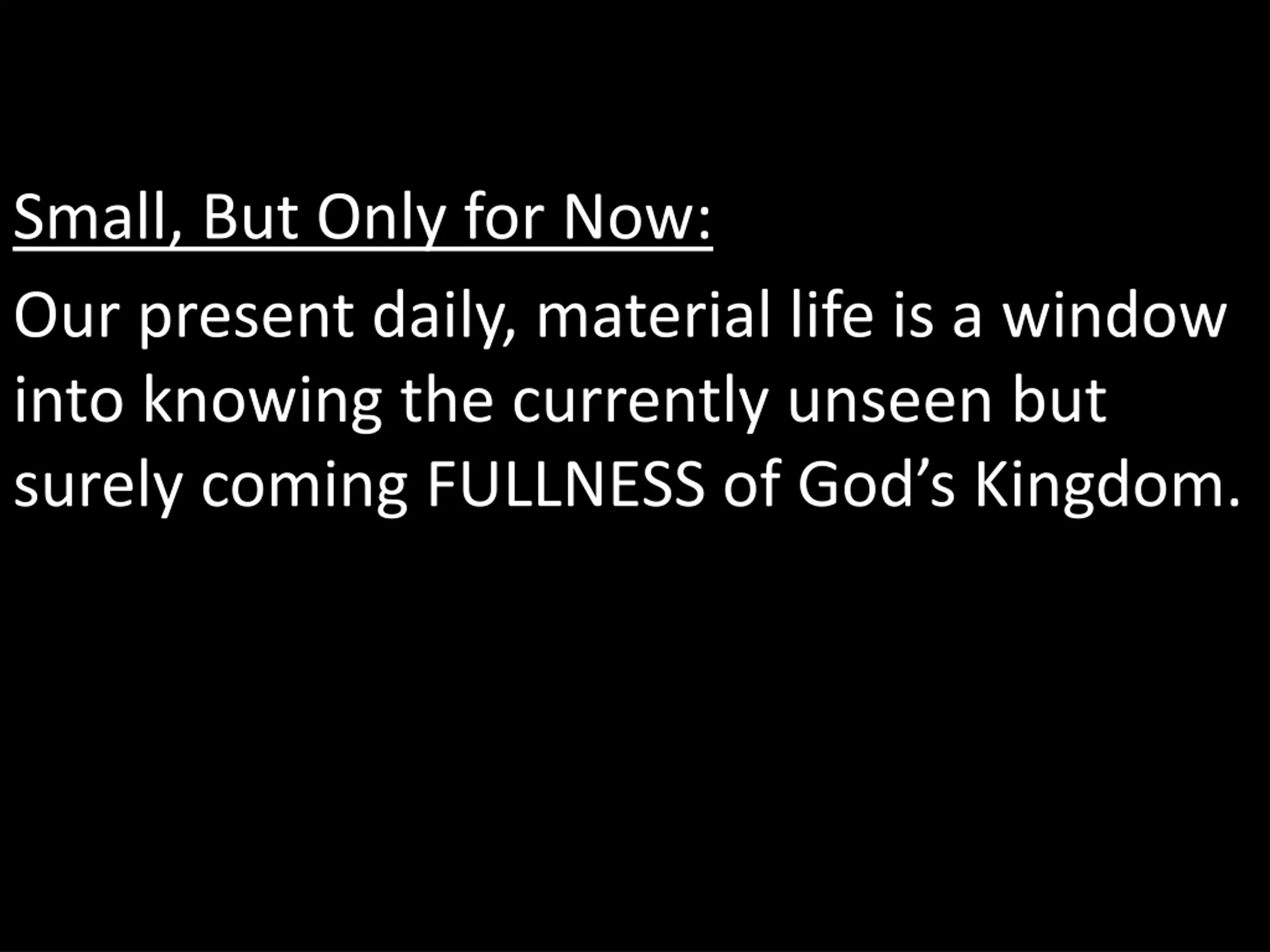 Small, But Only for Now: Our present daily, material life is a window into knowing the currently unseen but surely coming FULLNESS of God s Kingdom.
