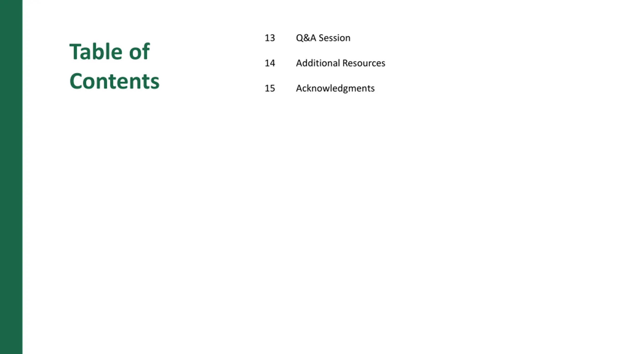 13 Q&A Session Table of Contents 14 Additional Resources 15 Acknowledgments