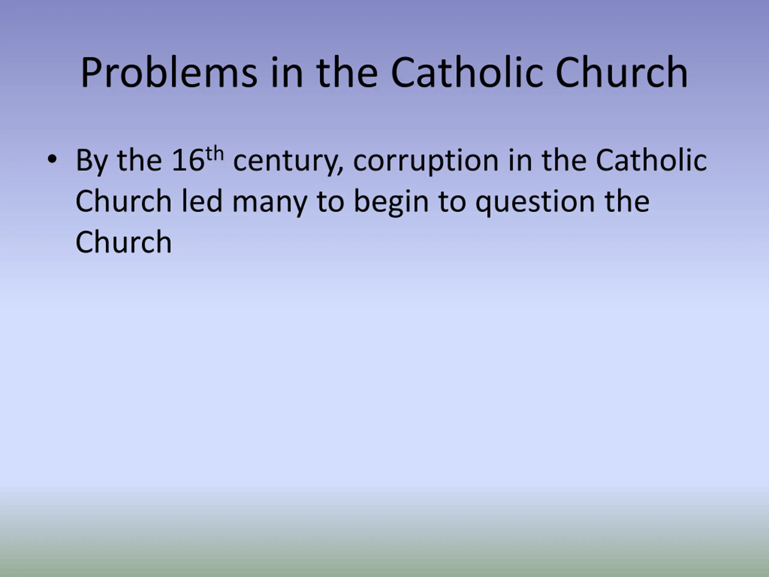 Problems in the Catholic Church By the 16thcentury, corruption in the Catholic Church led many to begin to question the Church