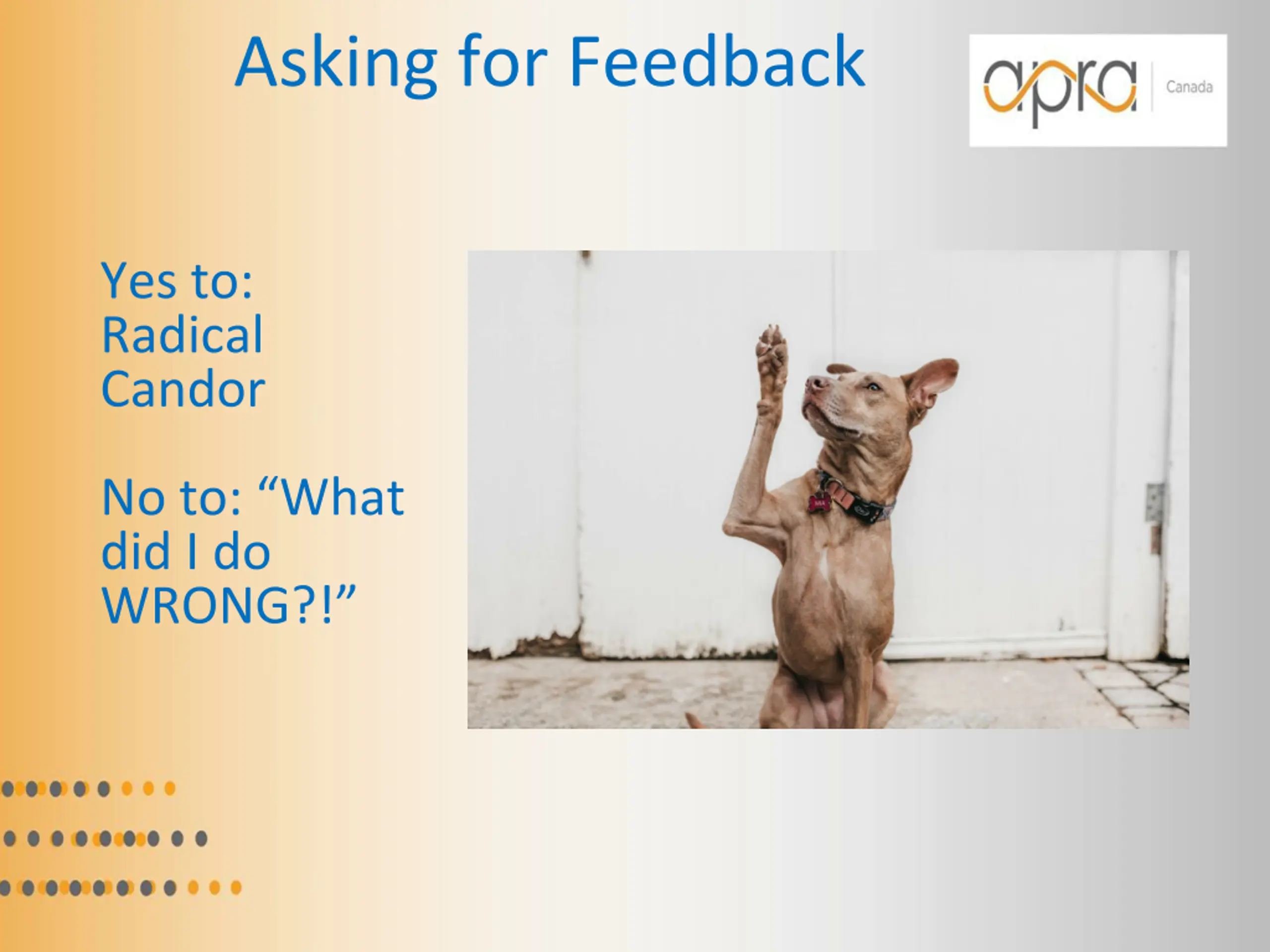Asking for Feedback Yes to: Radical Candor No to: What did I do WRONG?!