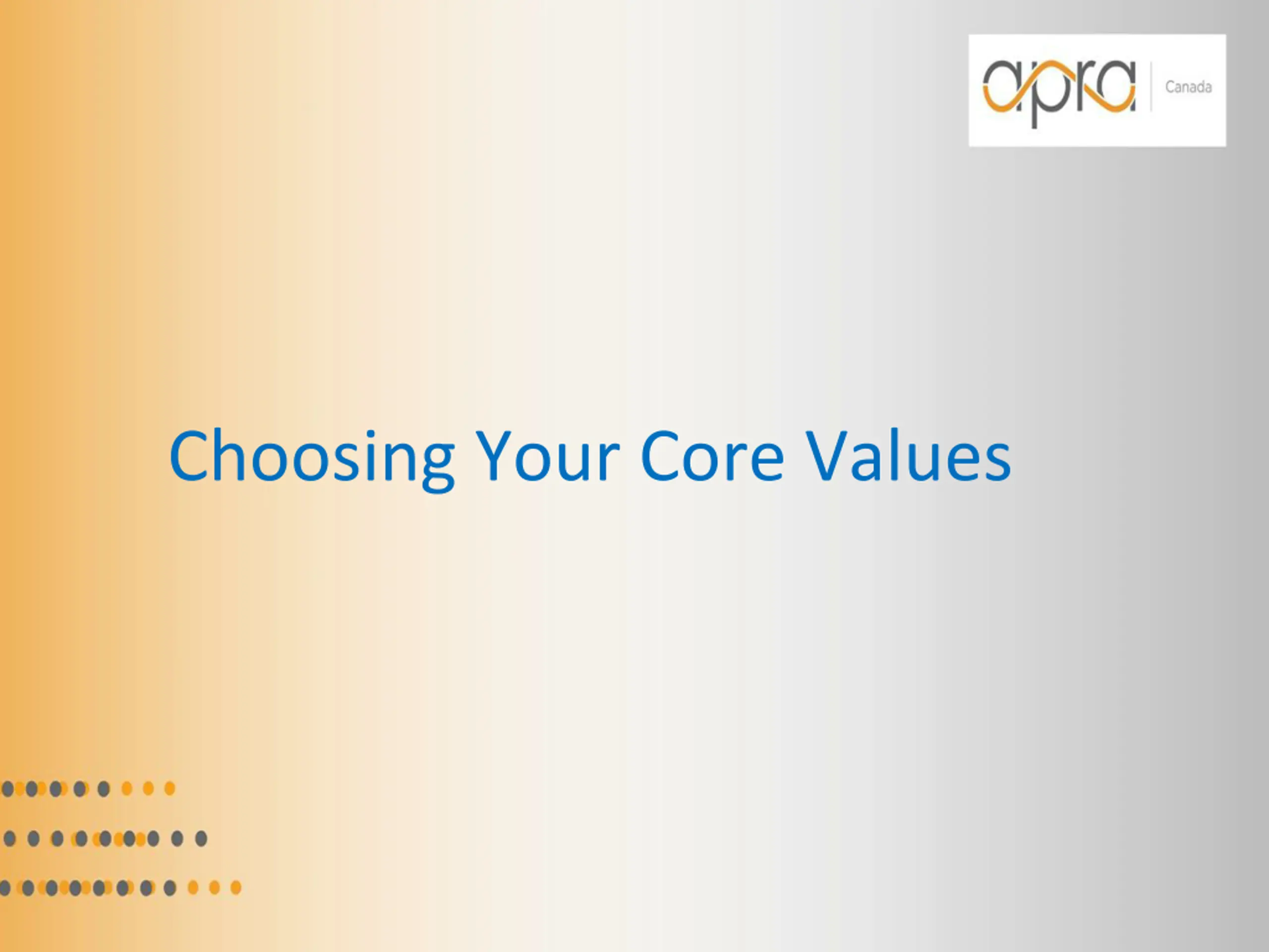 Looking IN: What Core Values Are What you hold to be of worth Who you are NOW Not a To Do list item