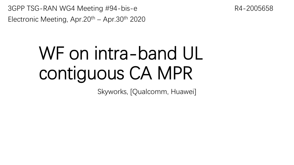 3GPP TSG-RAN WG4 Meeting #94-bis-e Electronic Meeting, Apr.20th Apr.30th2020 R4-2005658 WF on intra WF on intra- -band UL contiguous CA MPR contiguous CA MPR band UL Skyworks, [Qualcomm, Huawei]