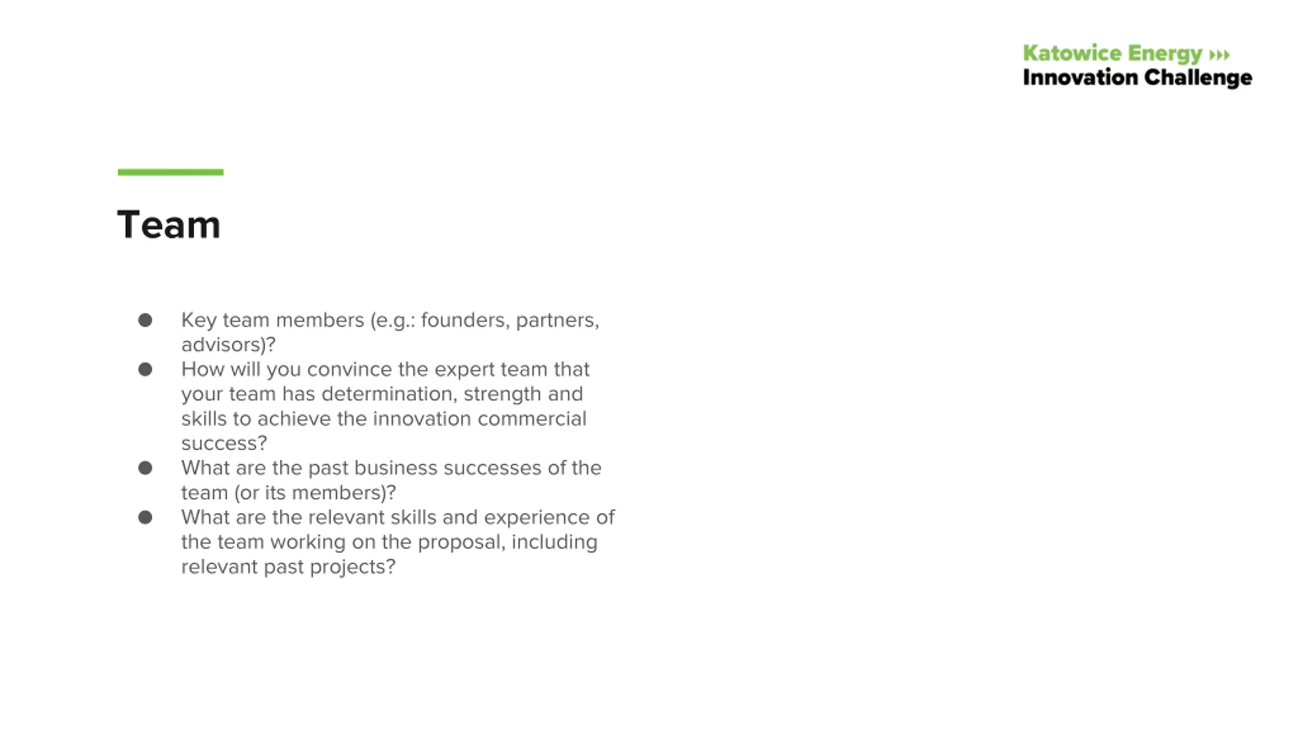 Team Key team members (e.g.: founders, partners, advisors)? How will you convince the expert team that your team has determination, strength and skills to achieve the innovation commercial success? What are the past business successes of the team (or its members)? What are the relevant skills and experience of the team working on the proposal, including relevant past projects?