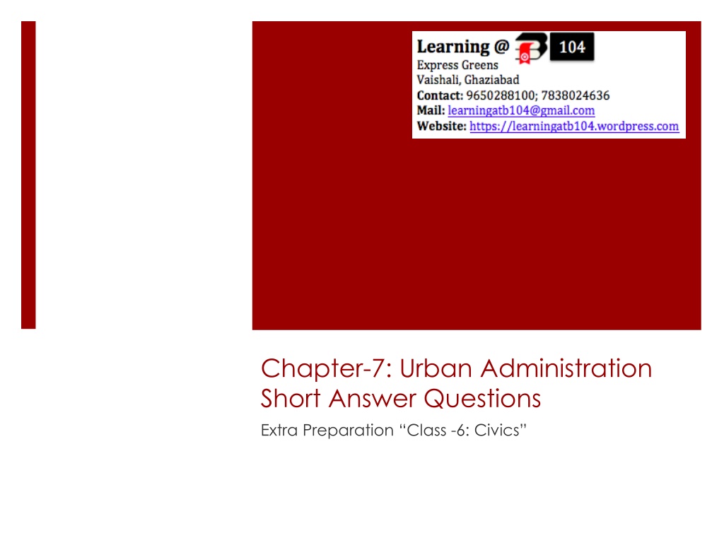Chapter-7: Urban Administration Short Answer Questions Extra Preparation Class -6: Civics