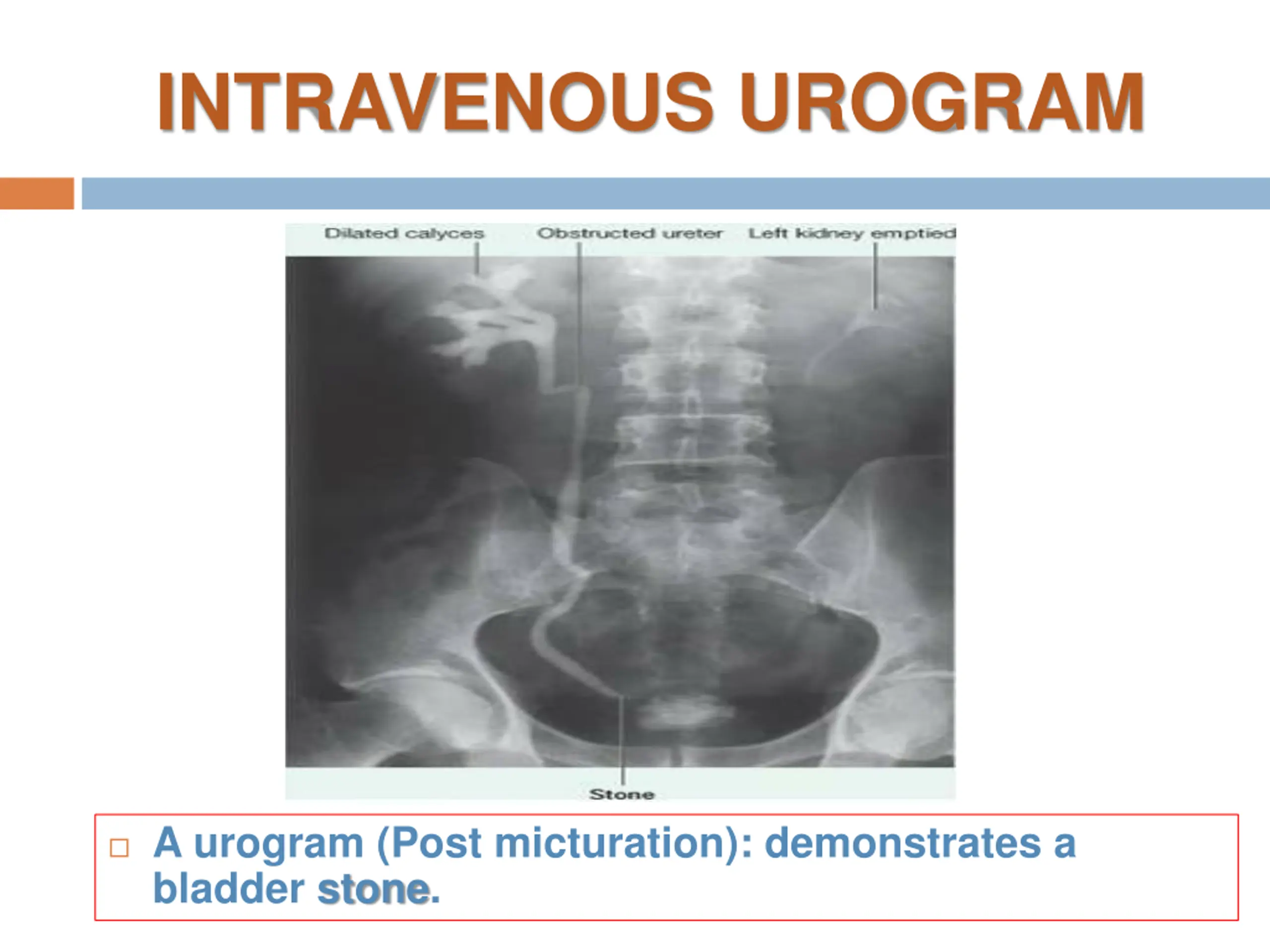 INTRAVENOUS UROGRAM A urogram (Post micturation): demonstrates a bladder stone.