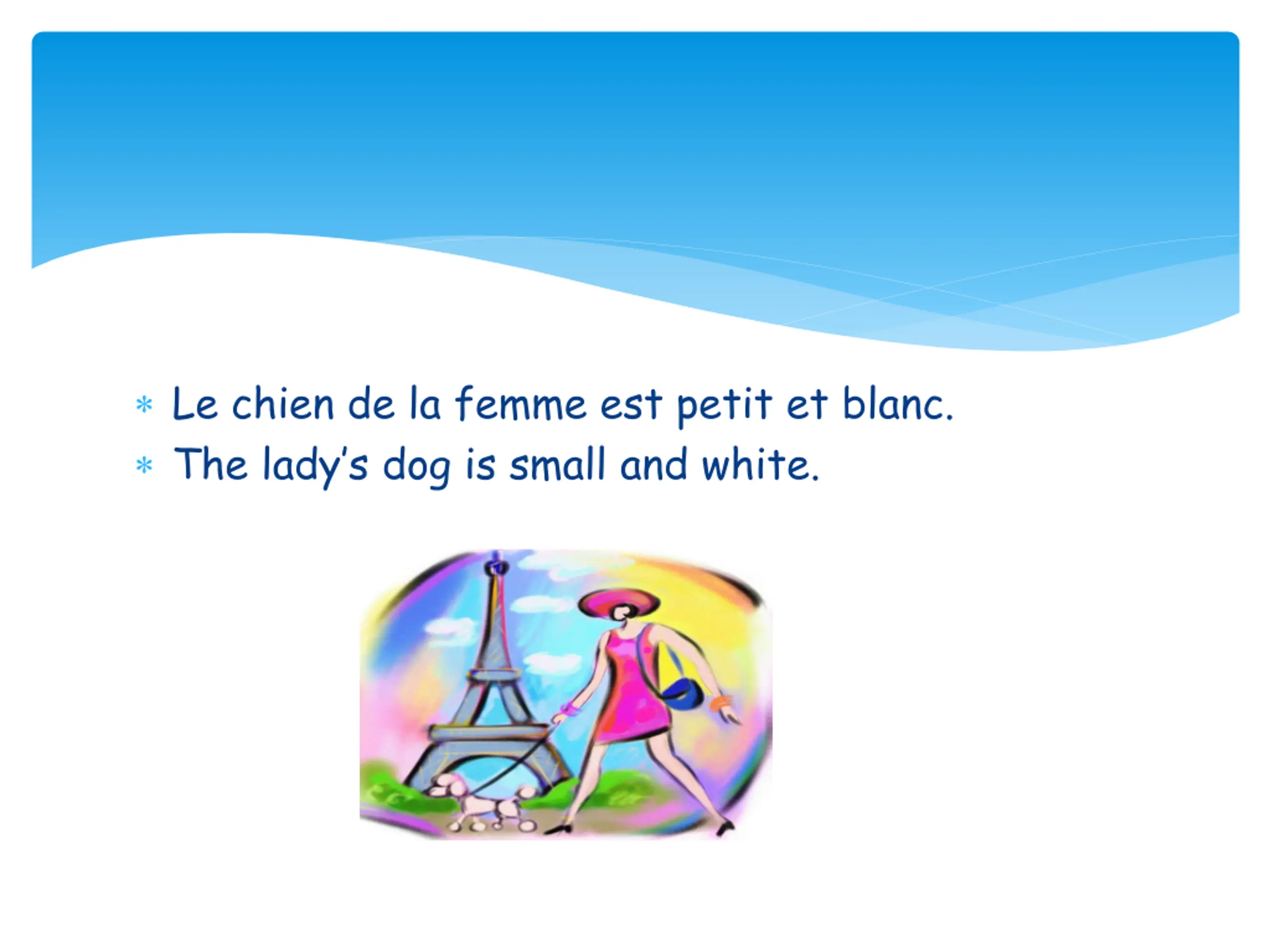 Le chien de la femme est petit et blanc. The lady s dog is small and white.
