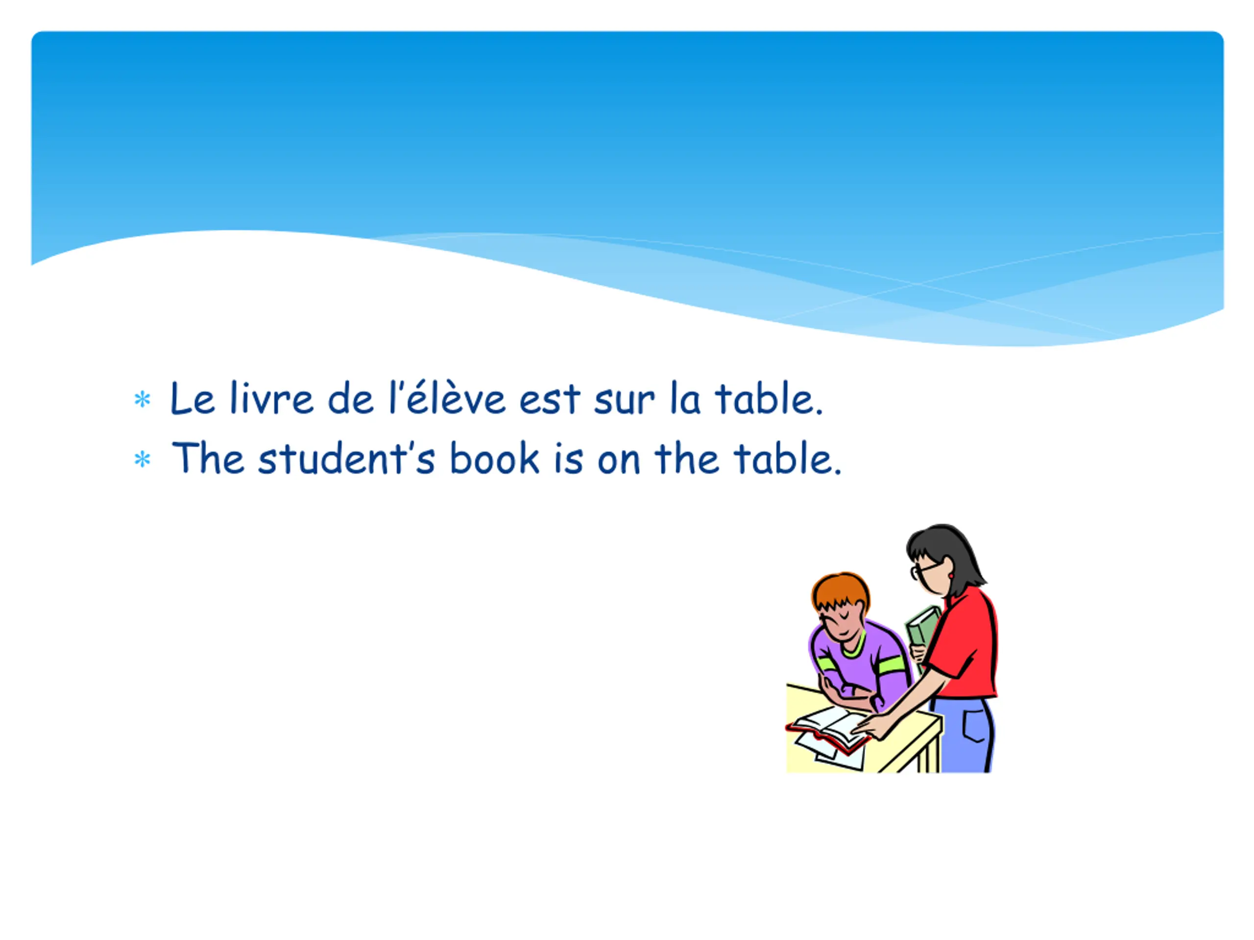 Le livre de llve est sur la table. The student s book is on the table.