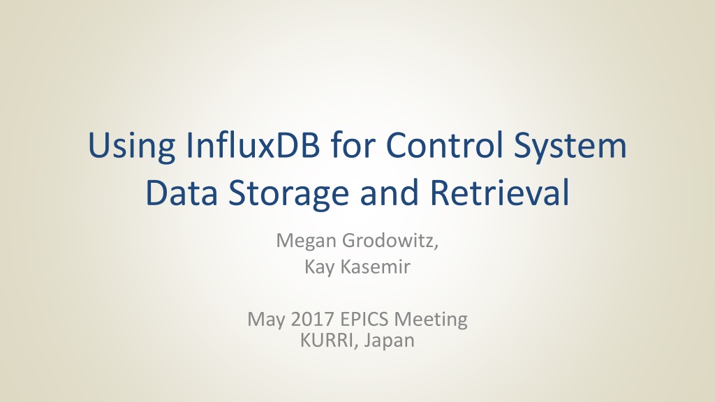 Using InfluxDB for Control System Data Storage and Retrieval Megan Grodowitz, Kay Kasemir May 2017 EPICS Meeting KURRI, Japan