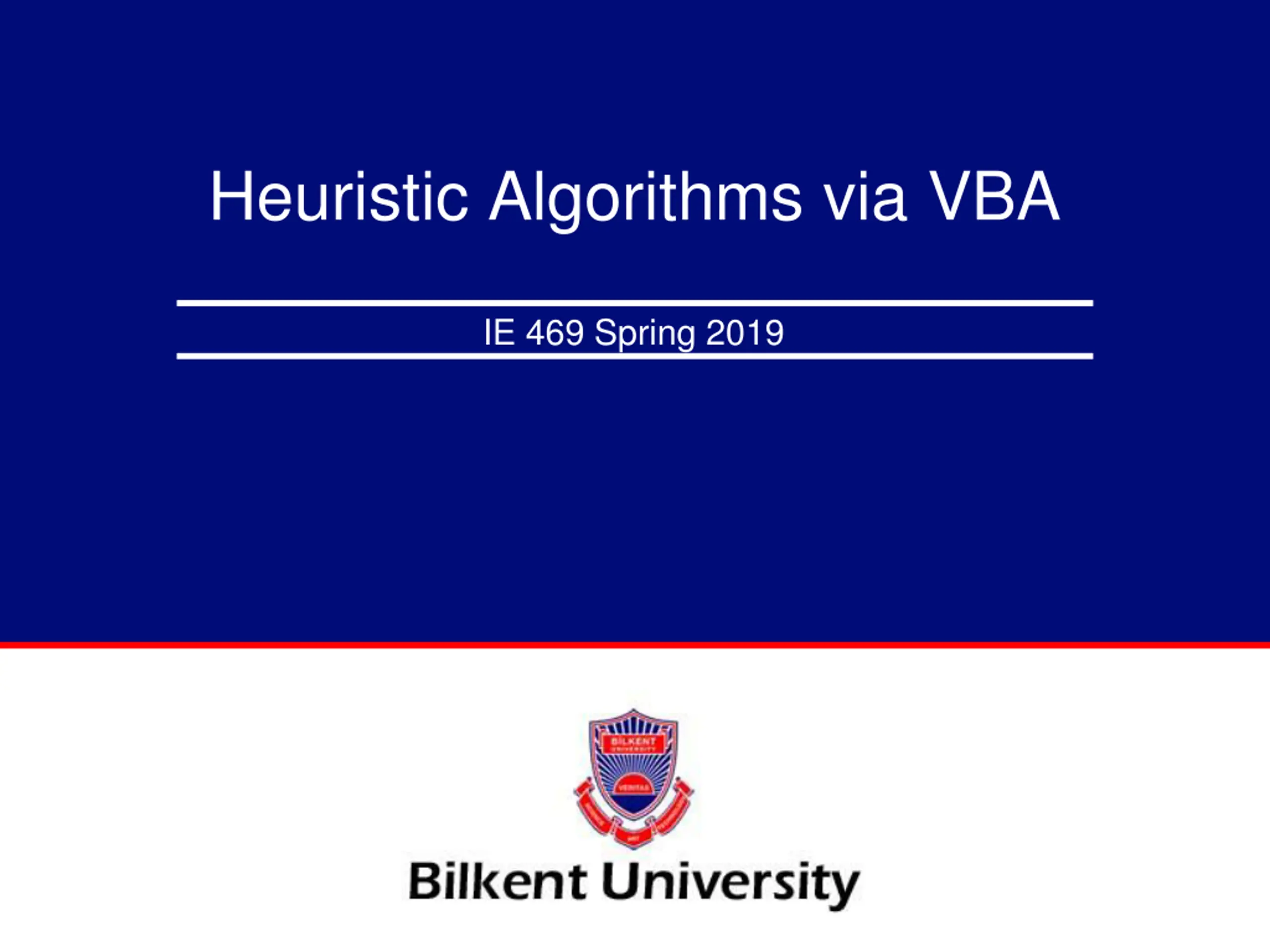 Heuristic Algorithms This course is NOT a heuristic algorithm design course. You are NOT expected to come up with a heuristic algorithm. BUT, given a heuristic algorithm design sometimes a pseudocode, you should be able to code them in VBA. These will not be complex algorithms I promise Slide 24