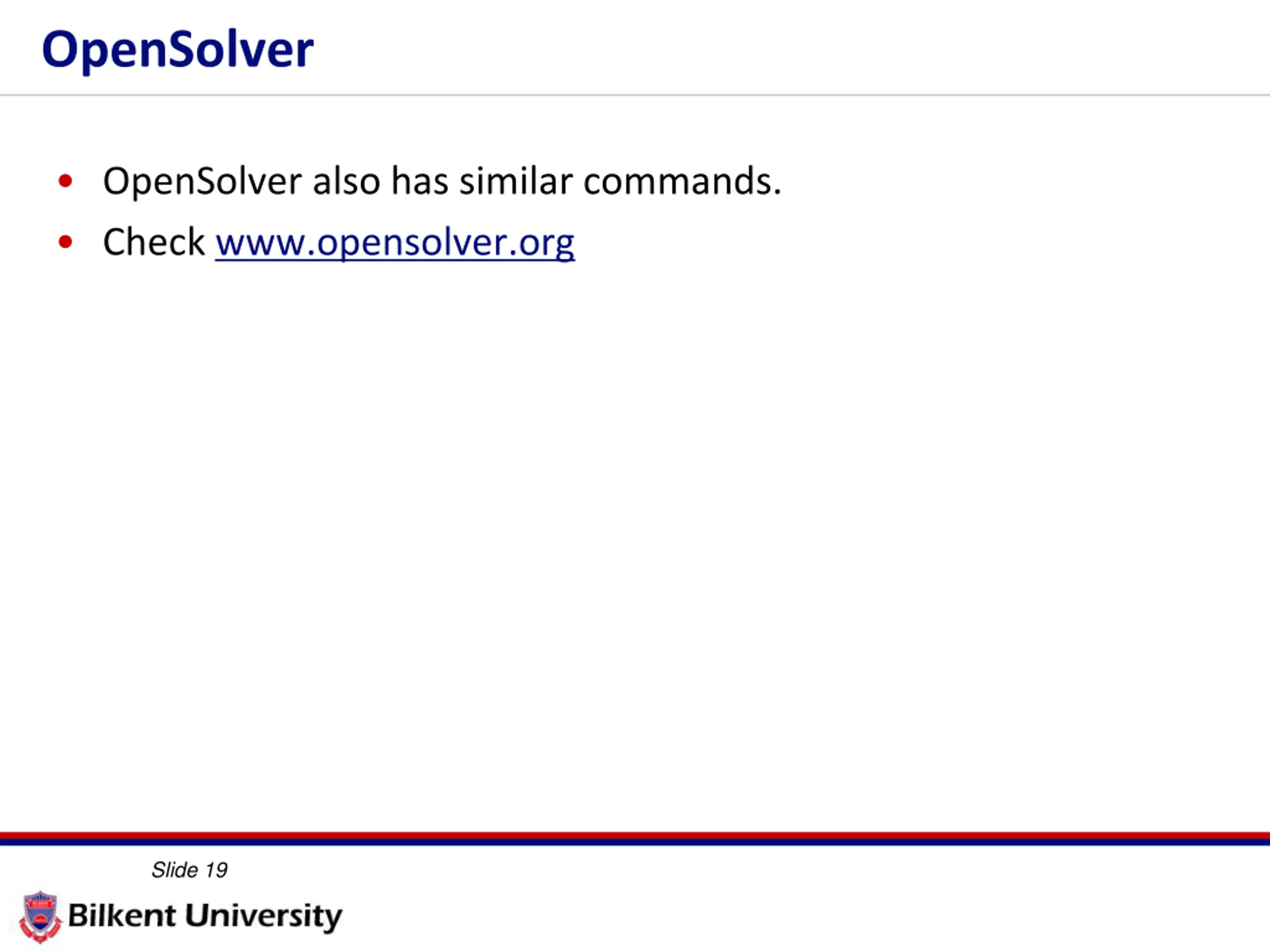 OpenSolver OpenSolver also has similar commands. Check www.opensolver.org Slide 19