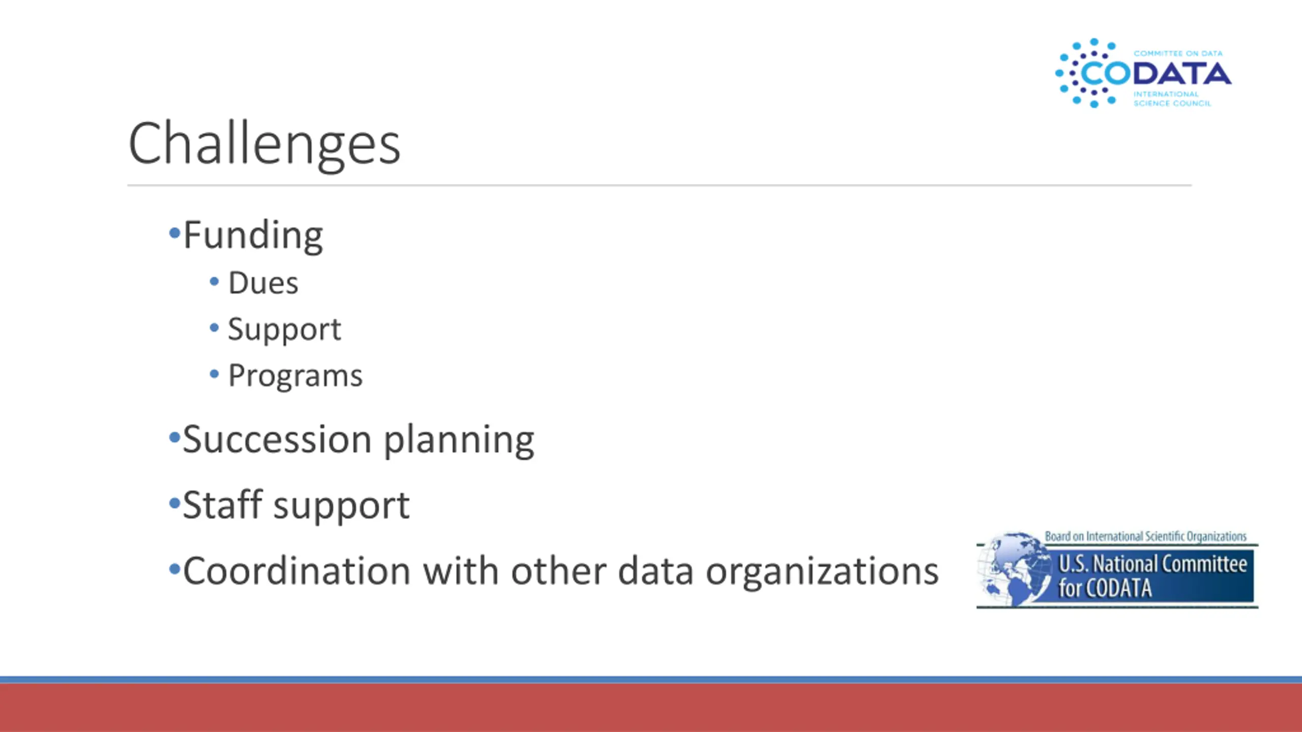CODATA, The Committee on Data for Science and Technology Challenges Funding Dues Support Programs Succession planning Staff support Coordination with other data organizations