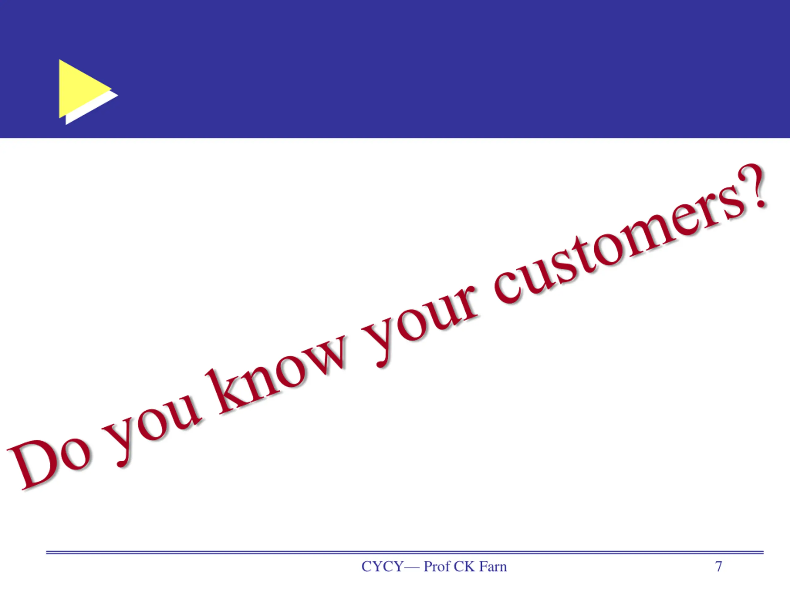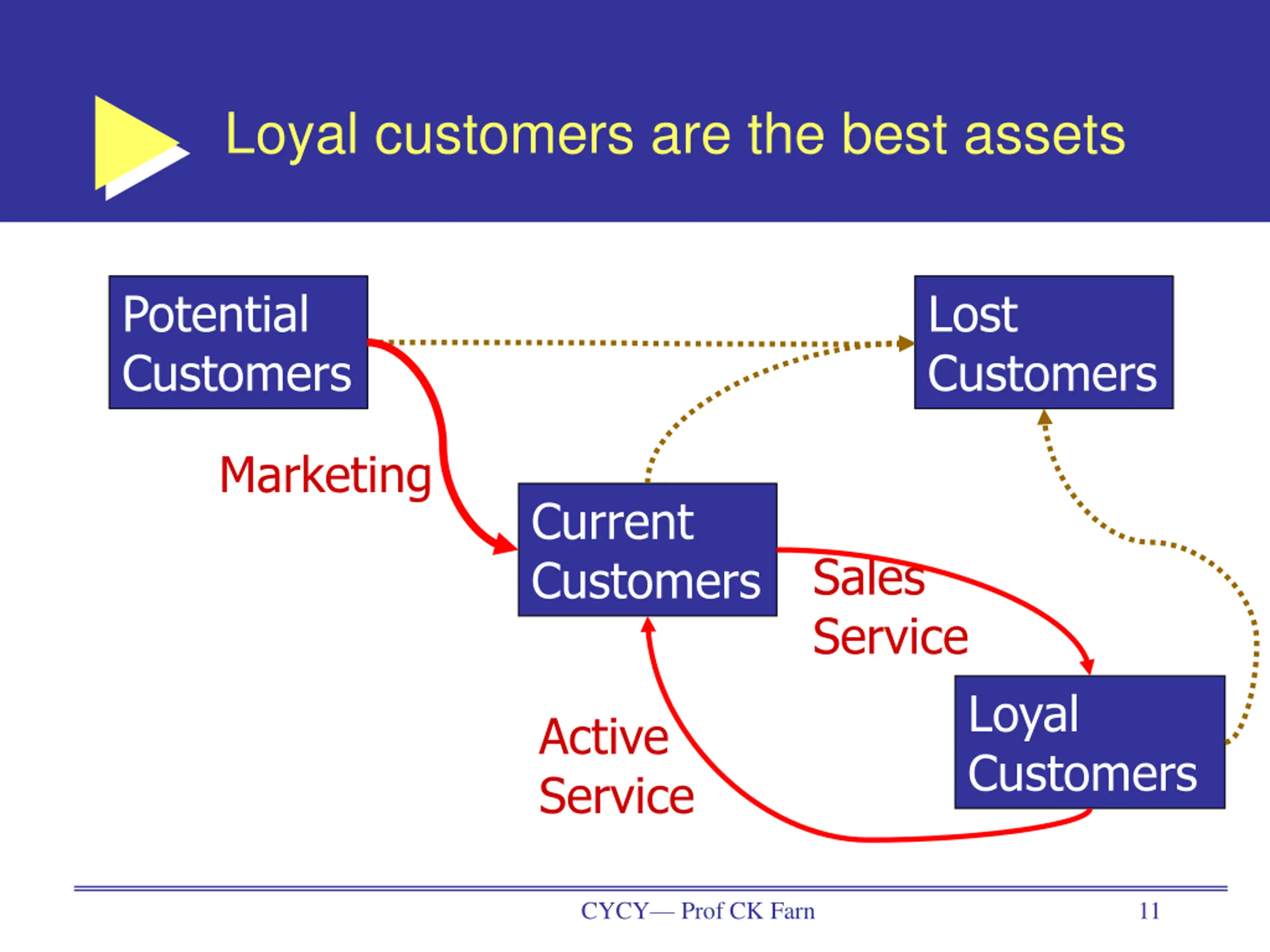 Loyal customers are the best assets Potential Customers Lost Customers Marketing Current Customers Sales Service Loyal Customers Active Service CYCY Prof CK Farn 11