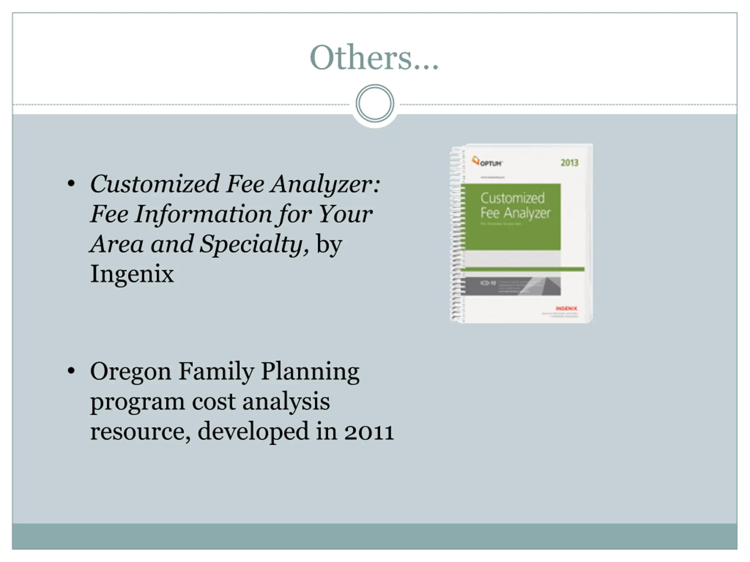 Others Customized Fee Analyzer: Fee Information for Your Area and Specialty, by Ingenix Oregon Family Planning program cost analysis resource, developed in 2011