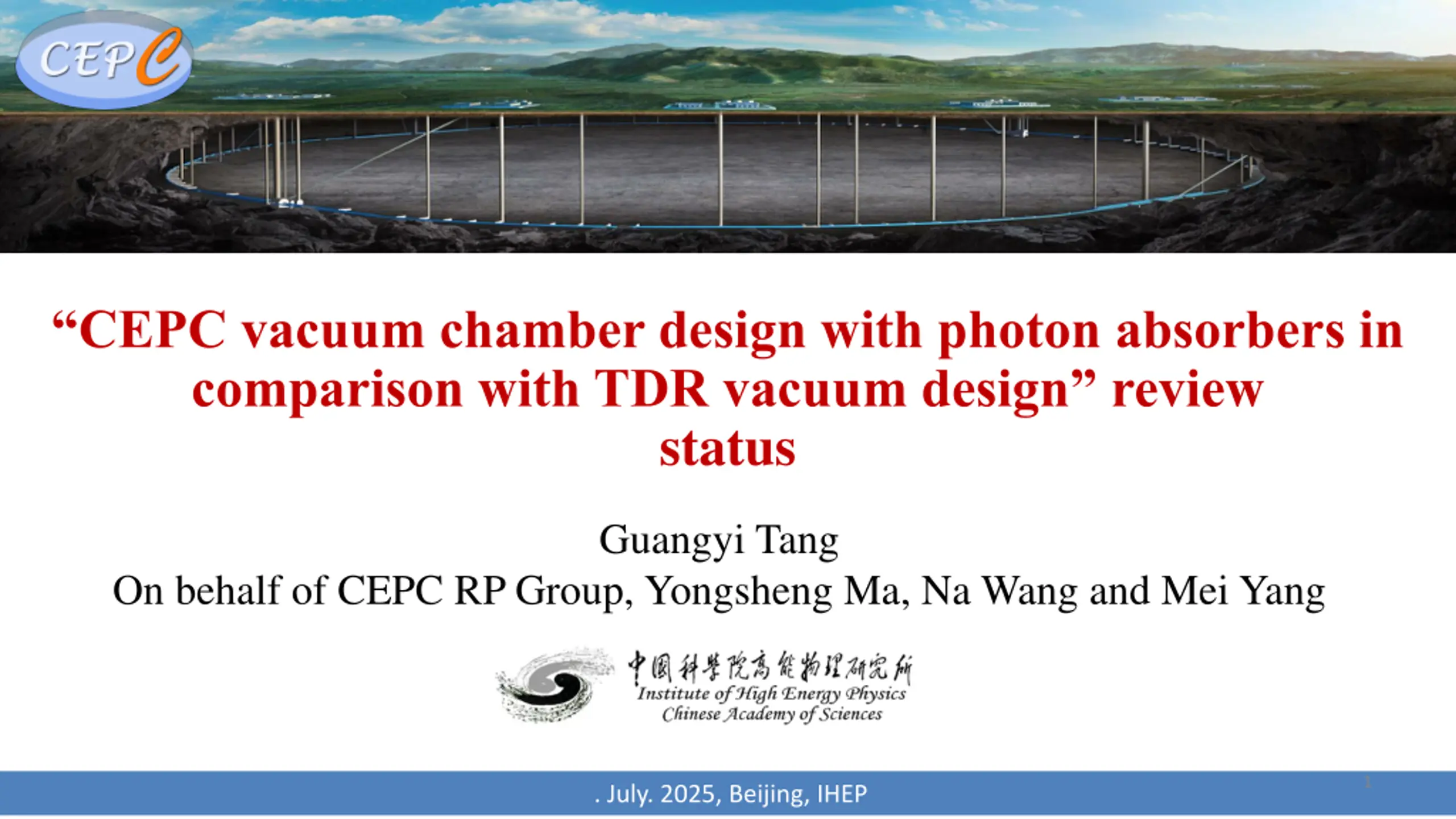 CEPC vacuum chamber design with photon absorbers in comparison with TDR vacuum design review status Guangyi Tang On behalf of CEPC RP Group, Yongsheng Ma, Na Wang and Mei Yang 1 . July. 2025, Beijing, IHEP
