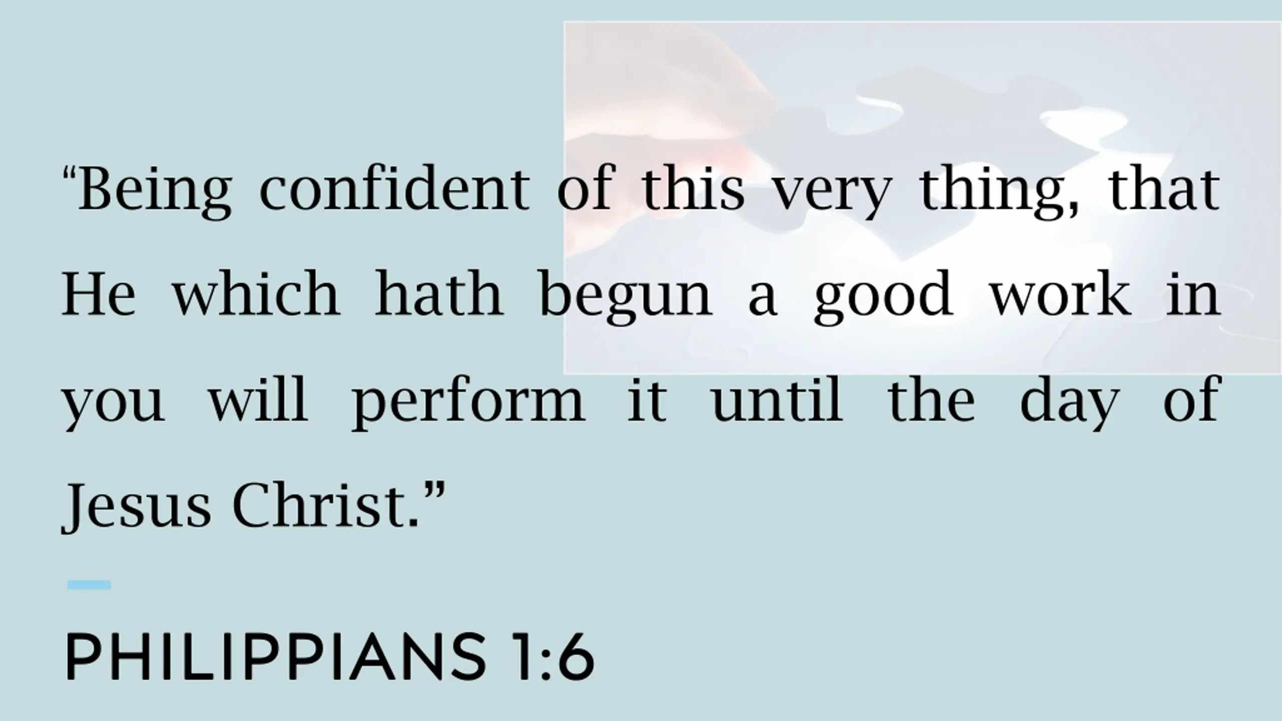 Being confident of this very thing, that He which hath begun a good work in you will perform it until the day of Jesus Christ. PHILIPPIANS 1:6