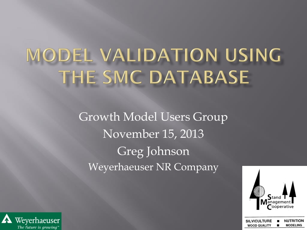 Growth Model Users Group November 15, 2013 Greg Johnson Weyerhaeuser NR Company