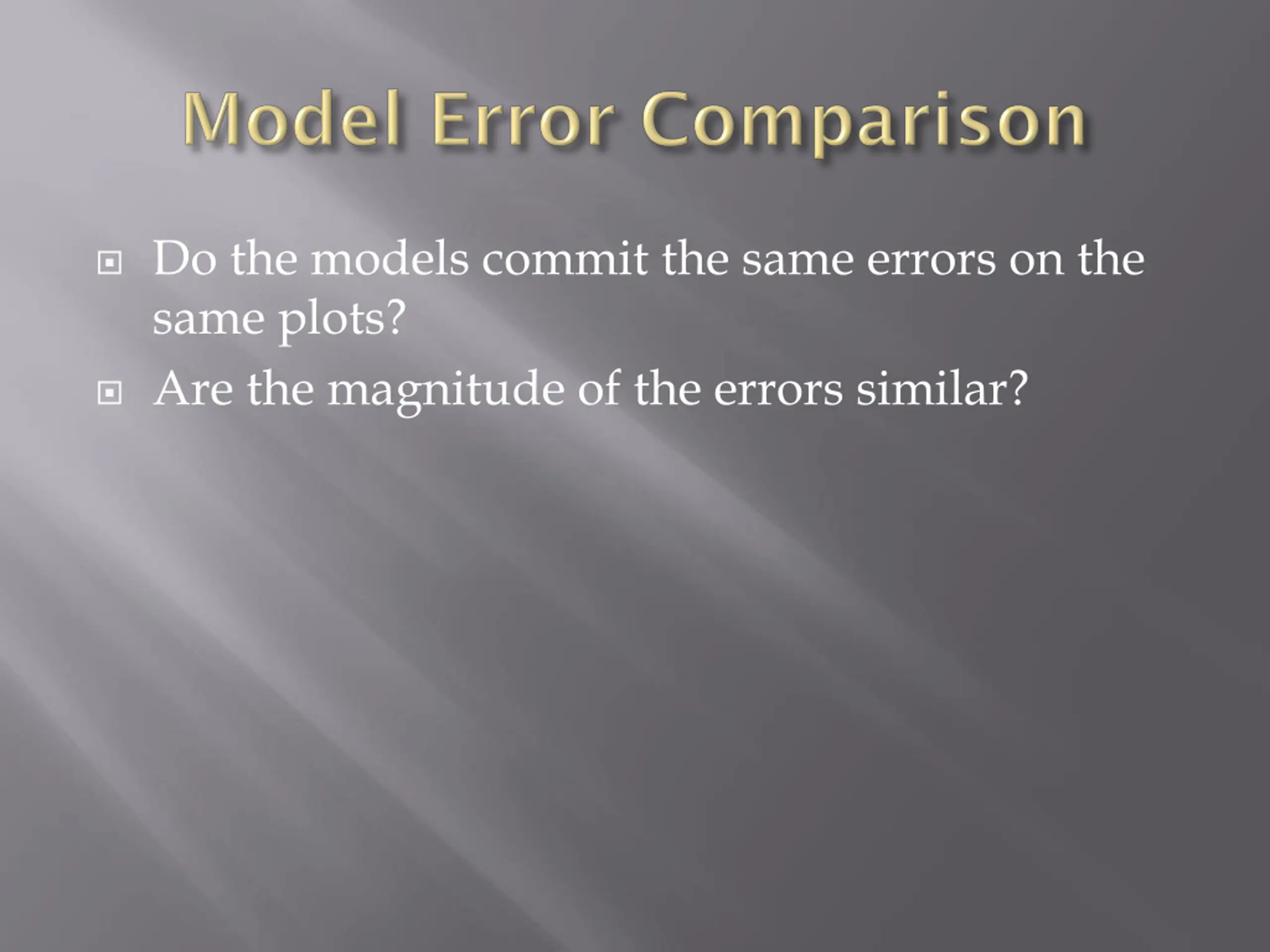 Do the models commit the same errors on the same plots? Are the magnitude of the errors similar?