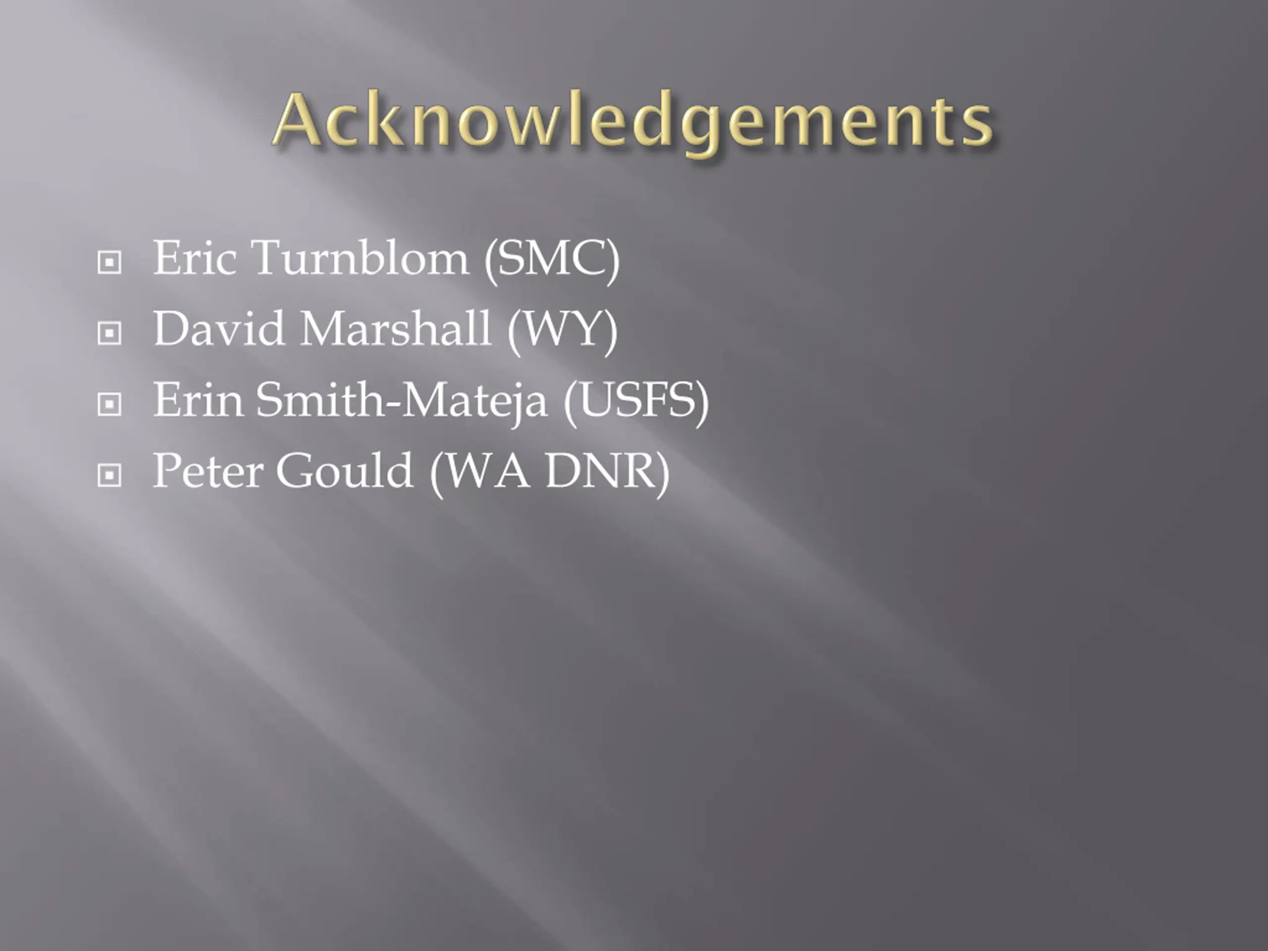 Eric Turnblom (SMC) David Marshall (WY) Erin Smith-Mateja (USFS) Peter Gould (WA DNR)