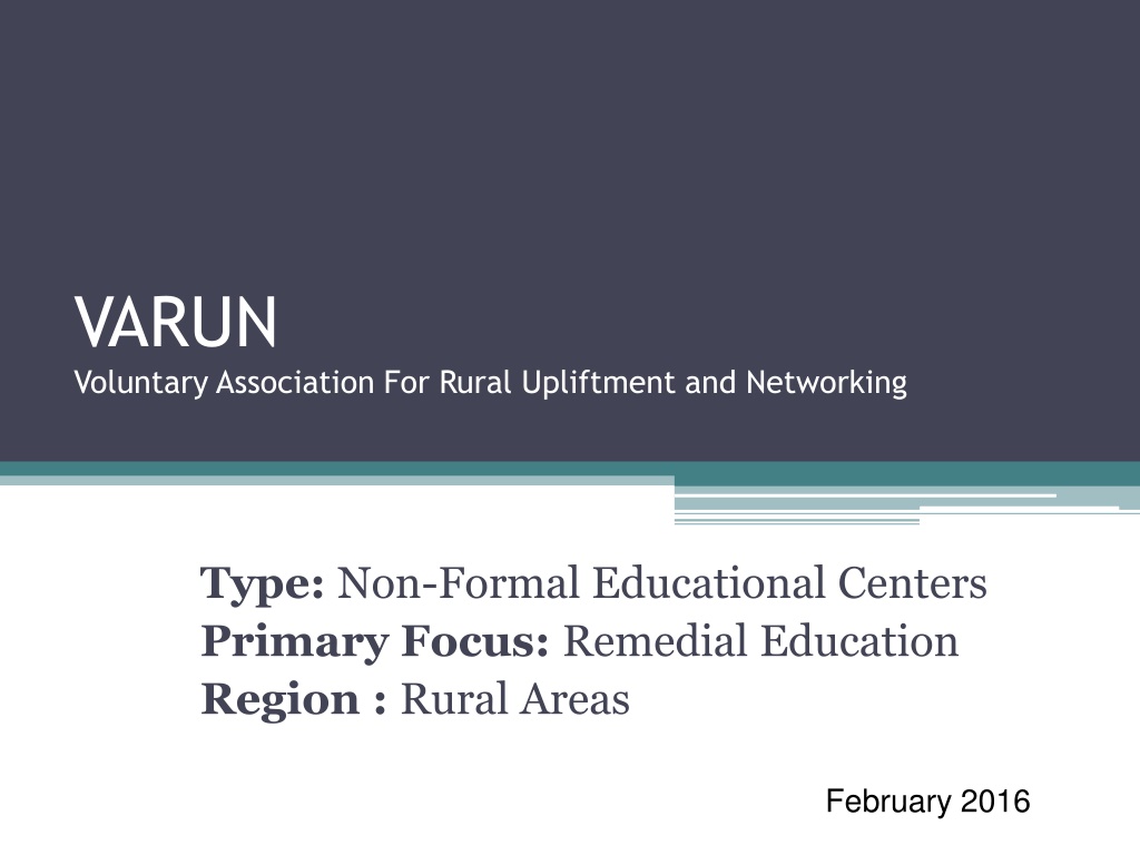 VARUN Voluntary Association For Rural Upliftment and Networking Type: Non-Formal Educational Centers Primary Focus: Remedial Education Region : Rural Areas February 2016