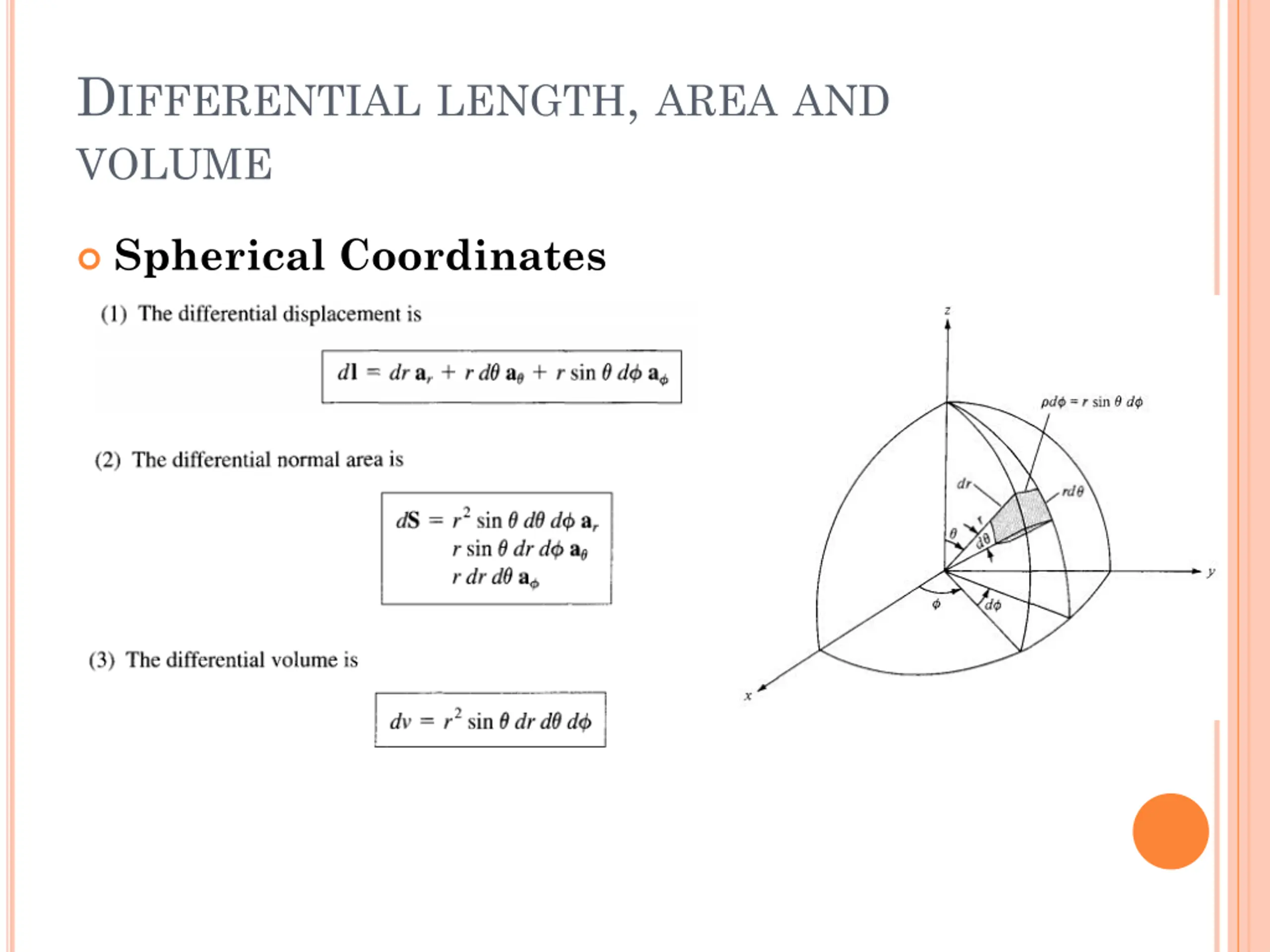 DIFFERENTIAL LENGTH, AREA AND VOLUME Spherical Coordinates