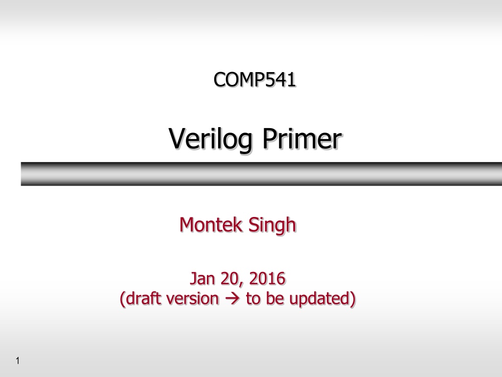 COMP541 Verilog Primer Montek Singh Jan 20, 2016 (draft version to be updated) 1