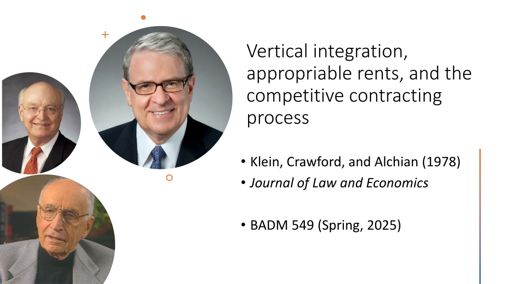 Vertical integration, appropriable rents, and the competitive contracting process Klein, Crawford, and Alchian (1978) Journal of Law and Economics BADM 549 (Spring, 2025)