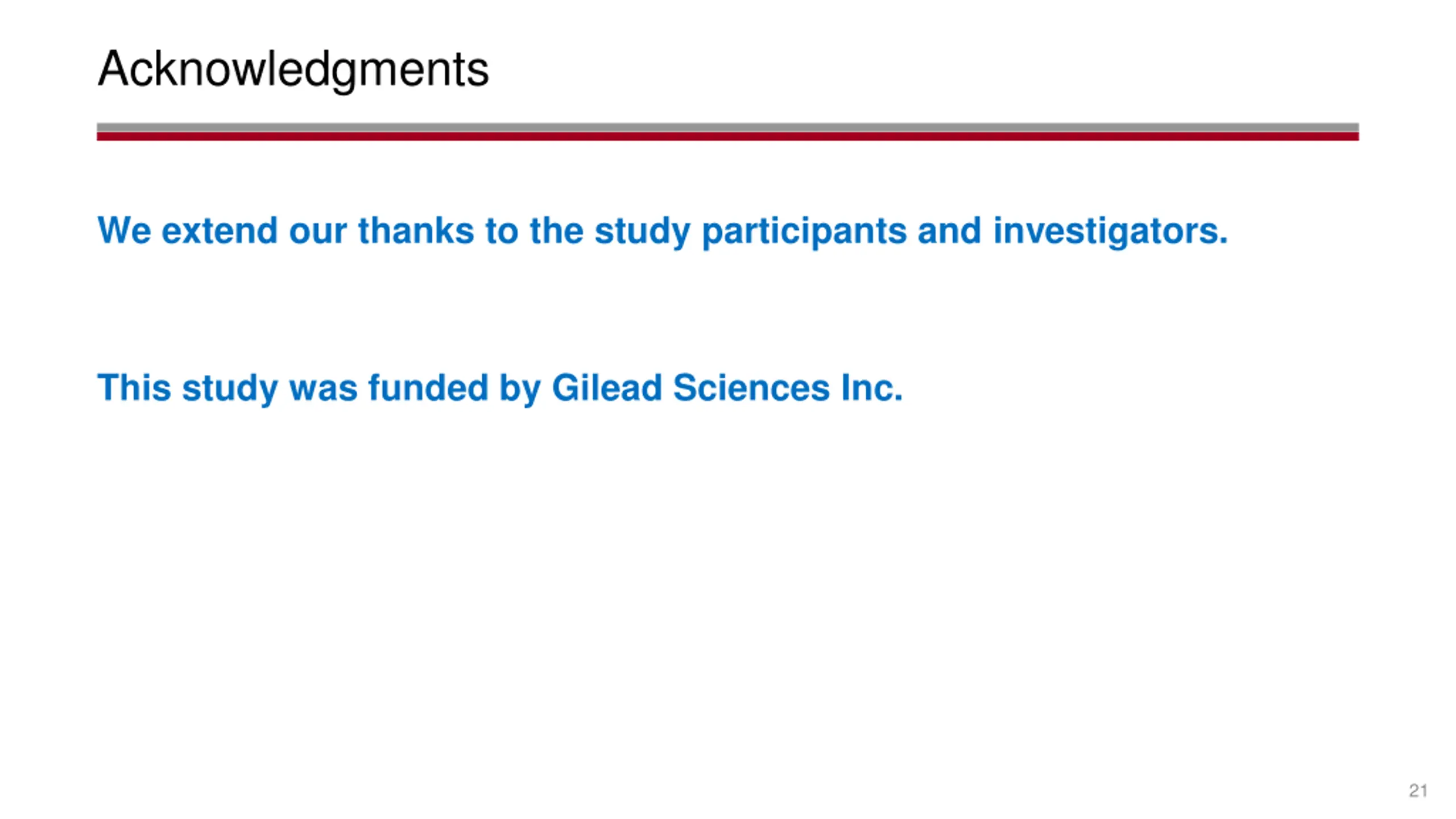 Acknowledgments We extend our thanks to the study participants and investigators. This study was funded by Gilead Sciences Inc. 21