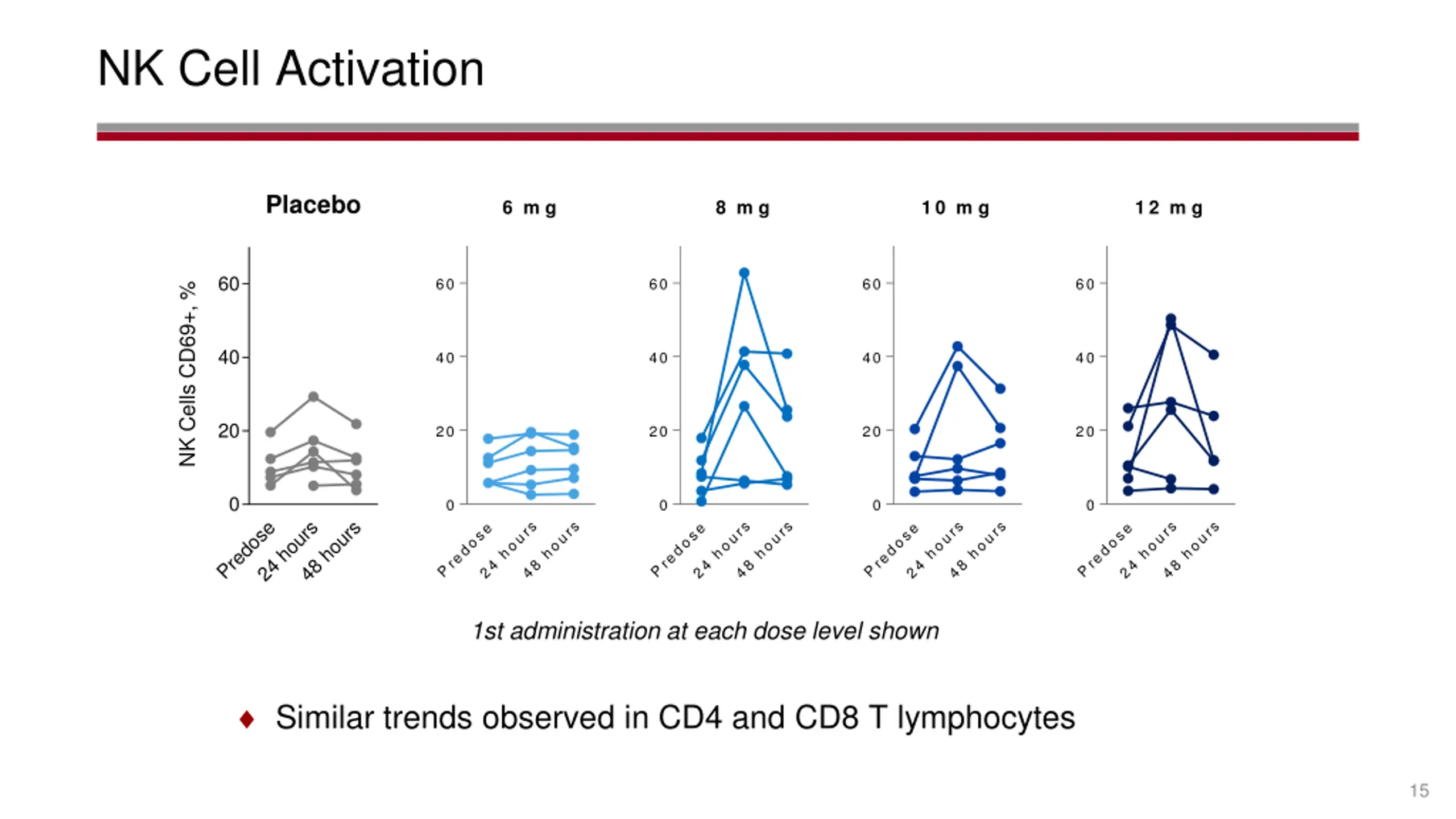 NK Cell Activation Placebo 6 m g 8 m g 10 m g 12 m g 60 60 60 60 60 NK Cells CD69+, % 40 40 40 40 40 20 20 20 20 20 0 0 0 0 0 24 hours 48 hours Predose 24 hours 48 hours 24 hours 48 hours 24 hours 48 hours 24 hours 48 hours P redose P redose P redose P redose 1st administration at each dose level shown Similar trends observed in CD4 and CD8 T lymphocytes 15