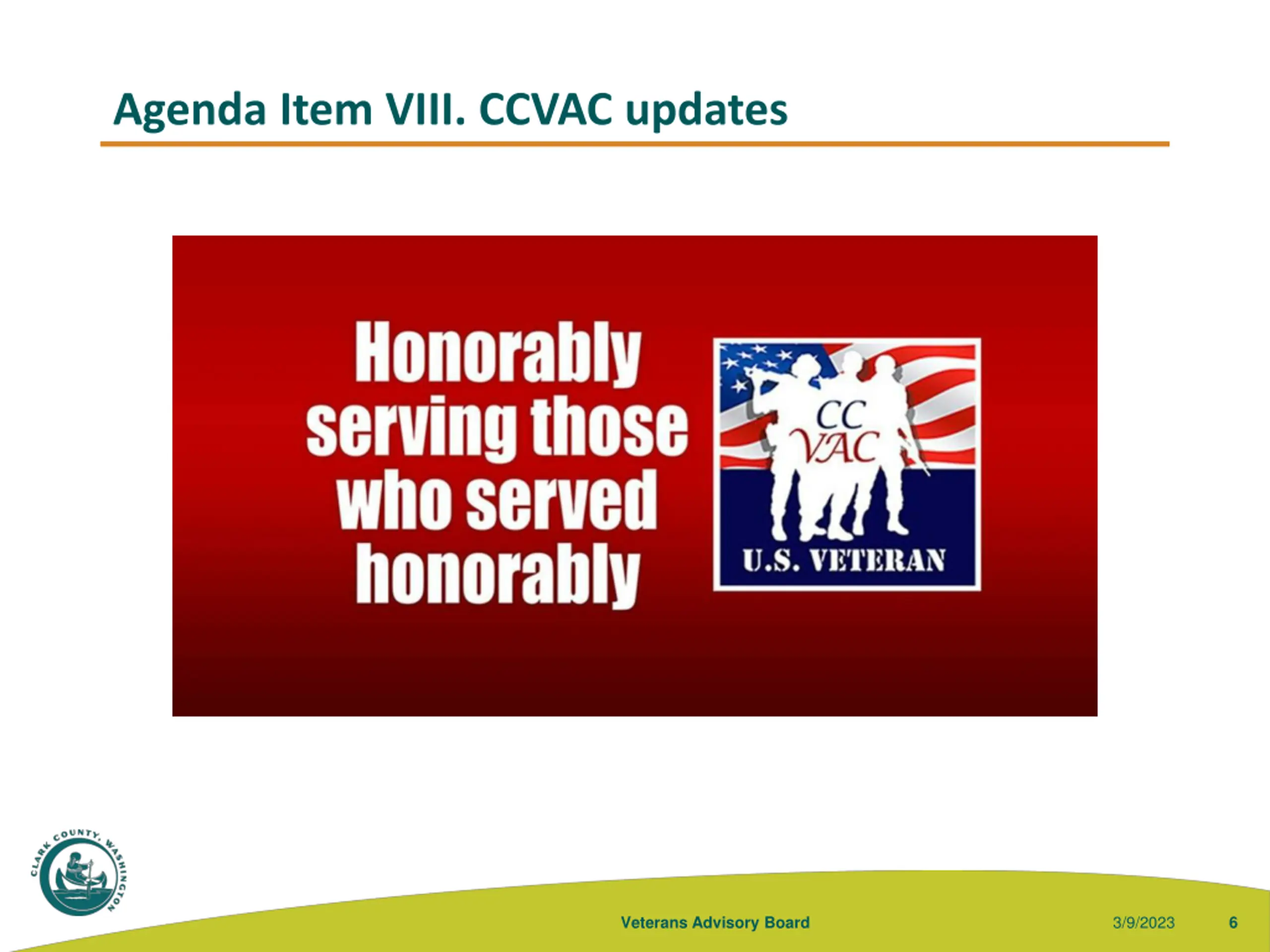 Agenda Item VIII. CCVAC updates 3/9/2023 Veterans Advisory Board 6