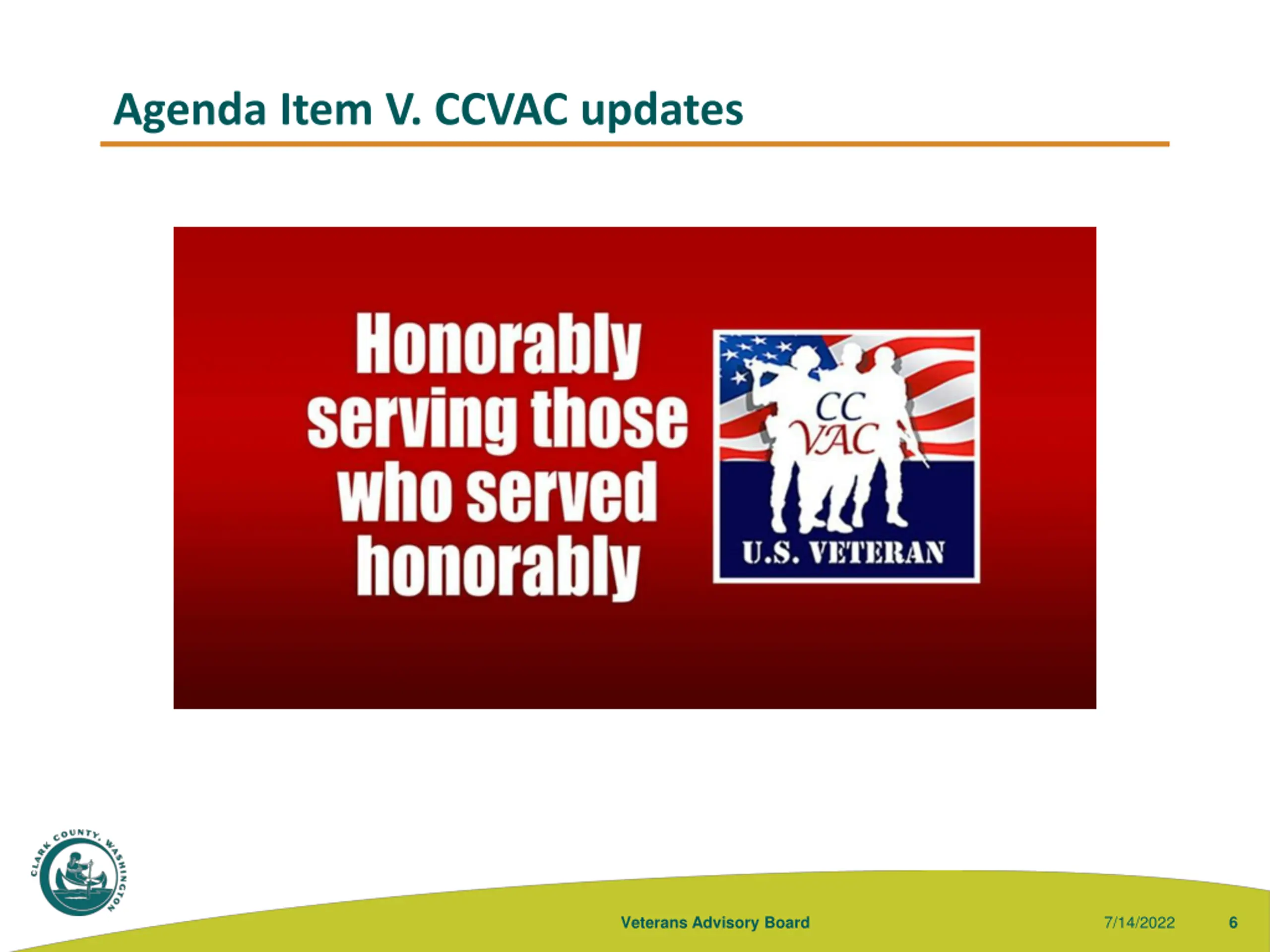 Agenda Item V. CCVAC updates 7/14/2022 Veterans Advisory Board 6