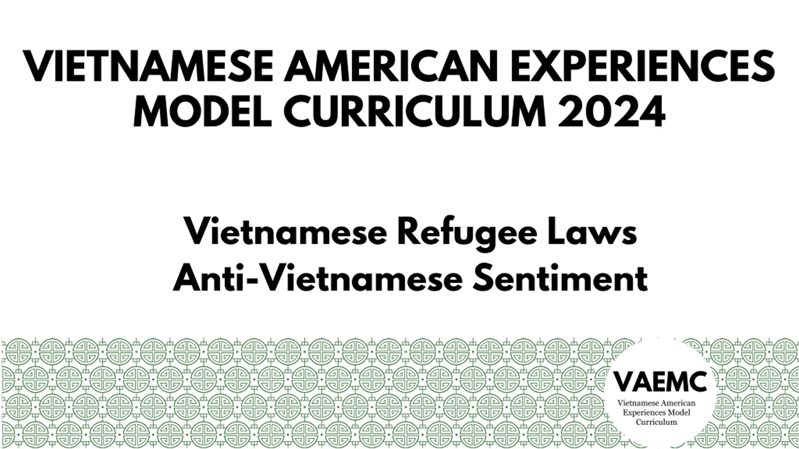 VIETNAMESE AMERICAN EXPERIENCES MODEL CURRICULUM 2024 Vietnamese Refugee Laws Anti-Vietnamese Sentiment VAEMC Vietnamese American Experiences Model Curriculum