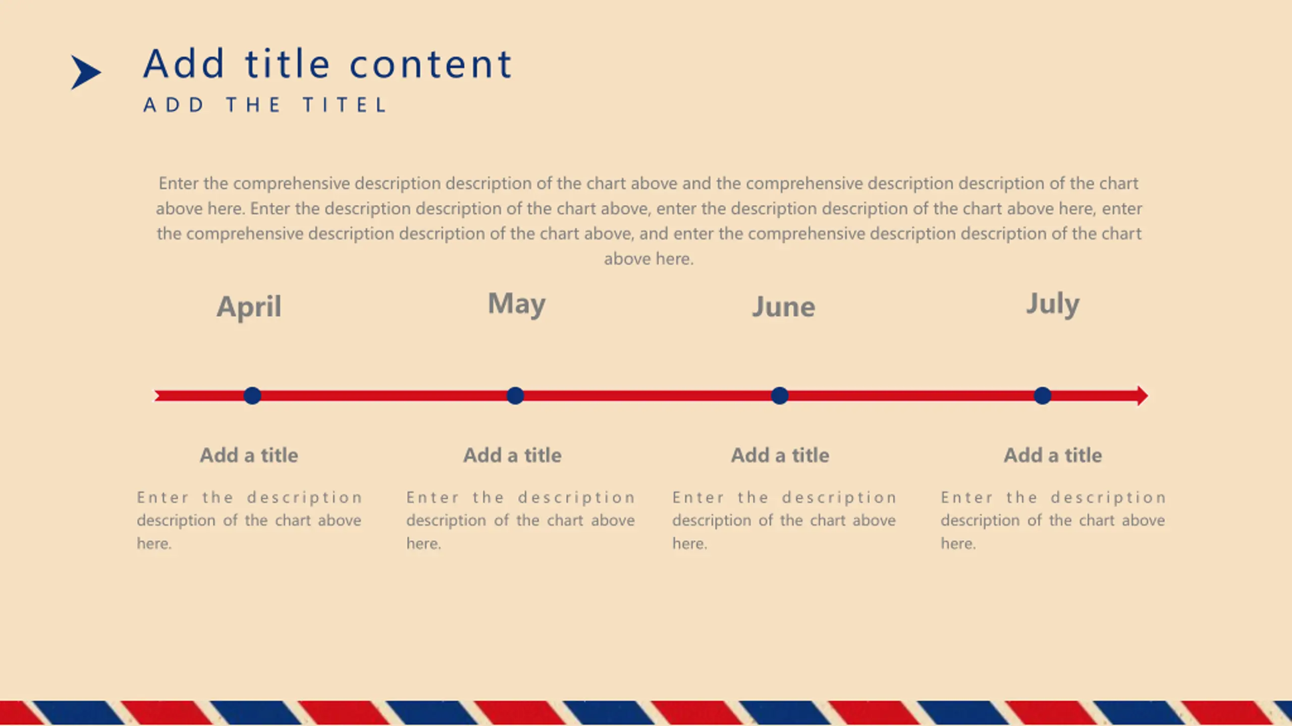 Add title content A D D T H E T I T E L Enter the comprehensive description description of the chart above and the comprehensive description description of the chart above here. Enter the description description of the chart above, enter the description description of the chart above here, enter the comprehensive description description of the chart above, and enter the comprehensive description description of the chart above here. May July April June Add a title Add a title Add a title Add a title E n t e r t h e d e s c r i p t i o n description of the chart above here. E n t e r t h e d e s c r i p t i o n description of the chart above here. E n t e r t h e d e s c r i p t i o n description of the chart above here. E n t e r t h e d e s c r i p t i o n description of the chart above here.
