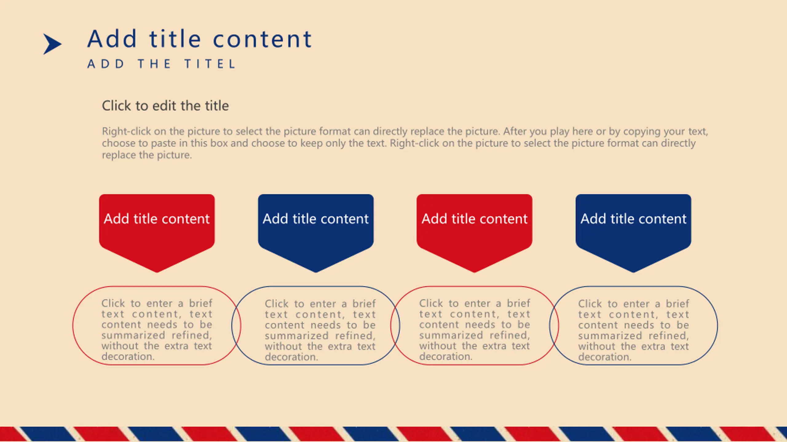Add title content A D D T H E T I T E L Click to edit the title Right-click on the picture to select the picture format can directly replace the picture. After you play here or by copying your text, choose to paste in this box and choose to keep only the text. Right-click on the picture to select the picture format can directly replace the picture. Add title content Add title content Add title content Add title content Click to enter a brief text content, text content needs to be summarized refined, without the extra text decoration. Click to enter a brief text content, text content needs to be summarized refined, without the extra text decoration. Click to enter a brief text content, text content needs to be summarized refined, without the extra text decoration. Click to enter a brief text content, text content needs to be summarized refined, without the extra text decoration.