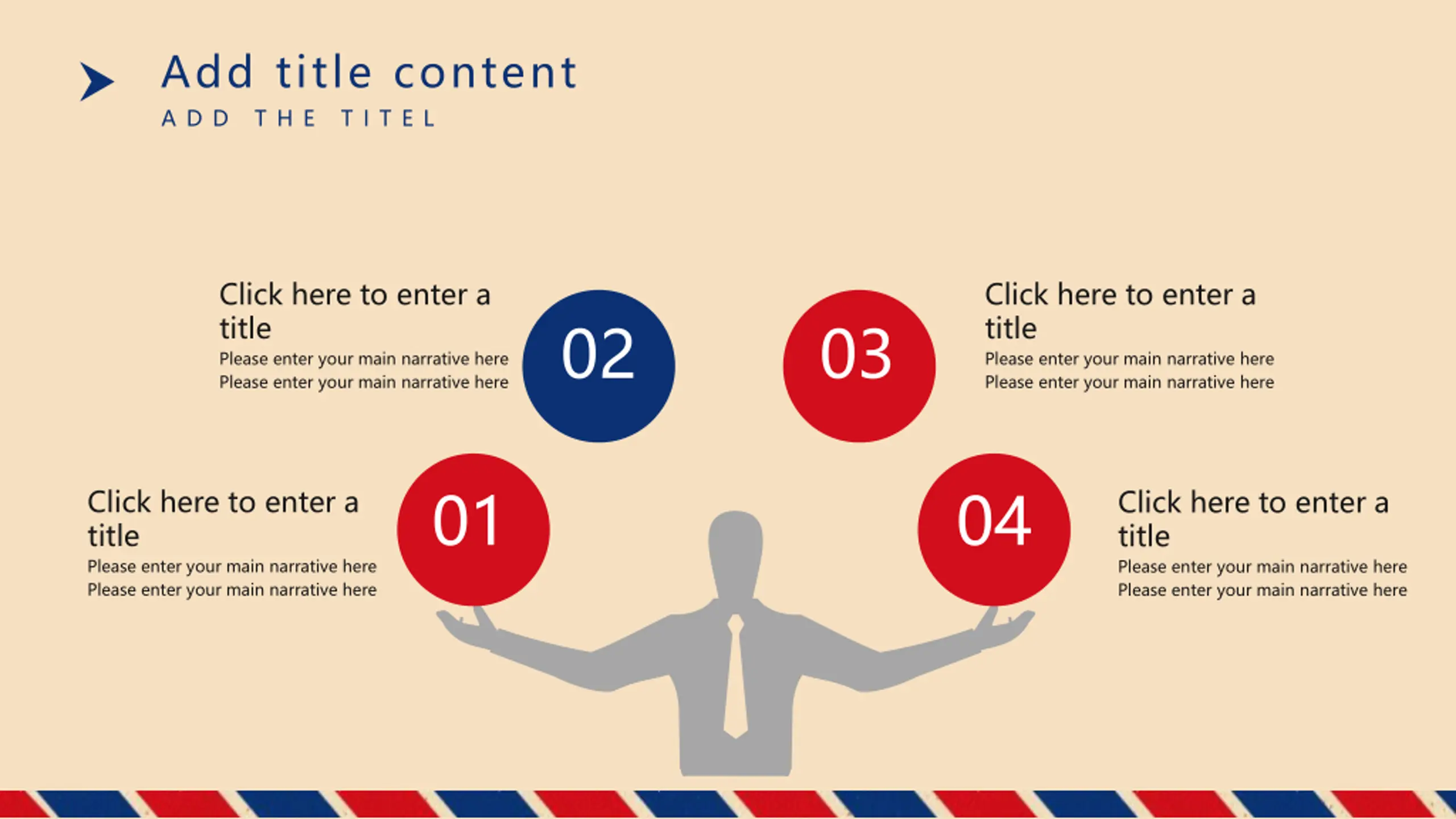 Add title content A D D T H E T I T E L Click here to enter a title Please enter your main narrative here Please enter your main narrative here Click here to enter a title Please enter your main narrative here Please enter your main narrative here 02 03 01 04 Click here to enter a title Please enter your main narrative here Please enter your main narrative here Click here to enter a title Please enter your main narrative here Please enter your main narrative here