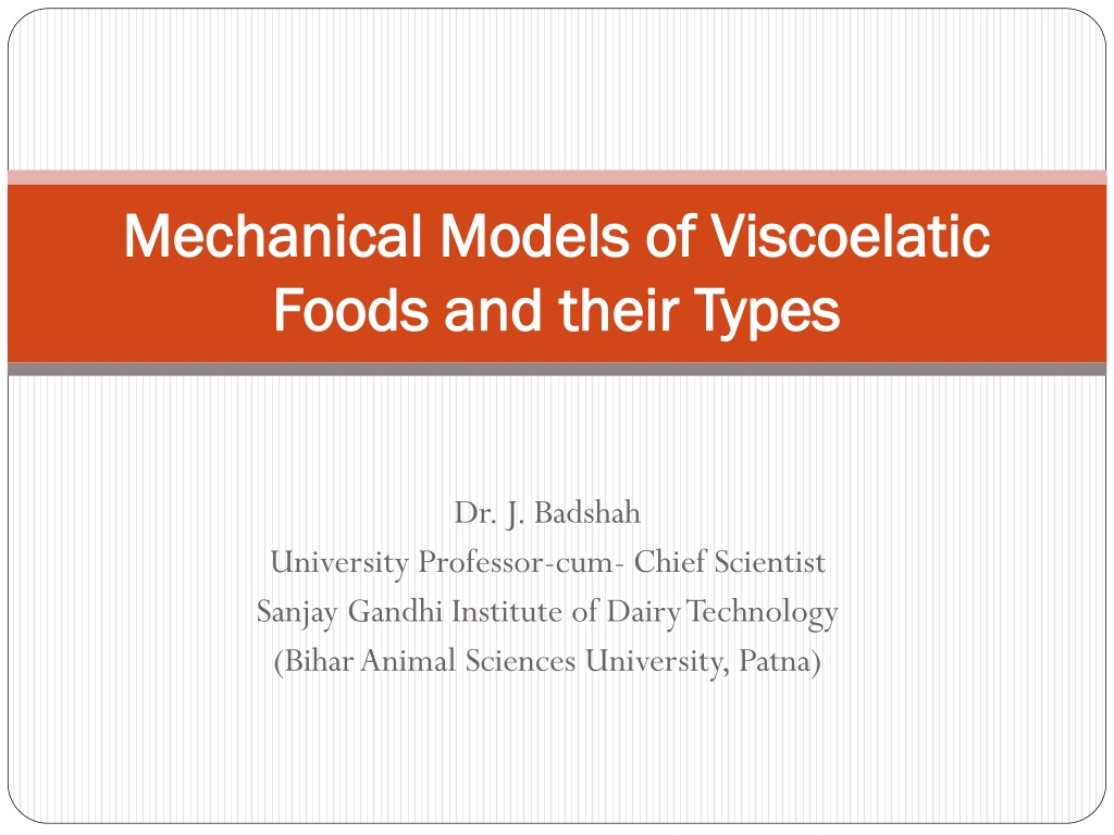Mechanical Models of Viscoelatic Mechanical Models of Viscoelatic Foods and their Types Foods and their Types Dr. J. Badshah University Professor-cum- Chief Scientist Sanjay Gandhi Institute of Dairy Technology (Bihar Animal Sciences University, Patna)