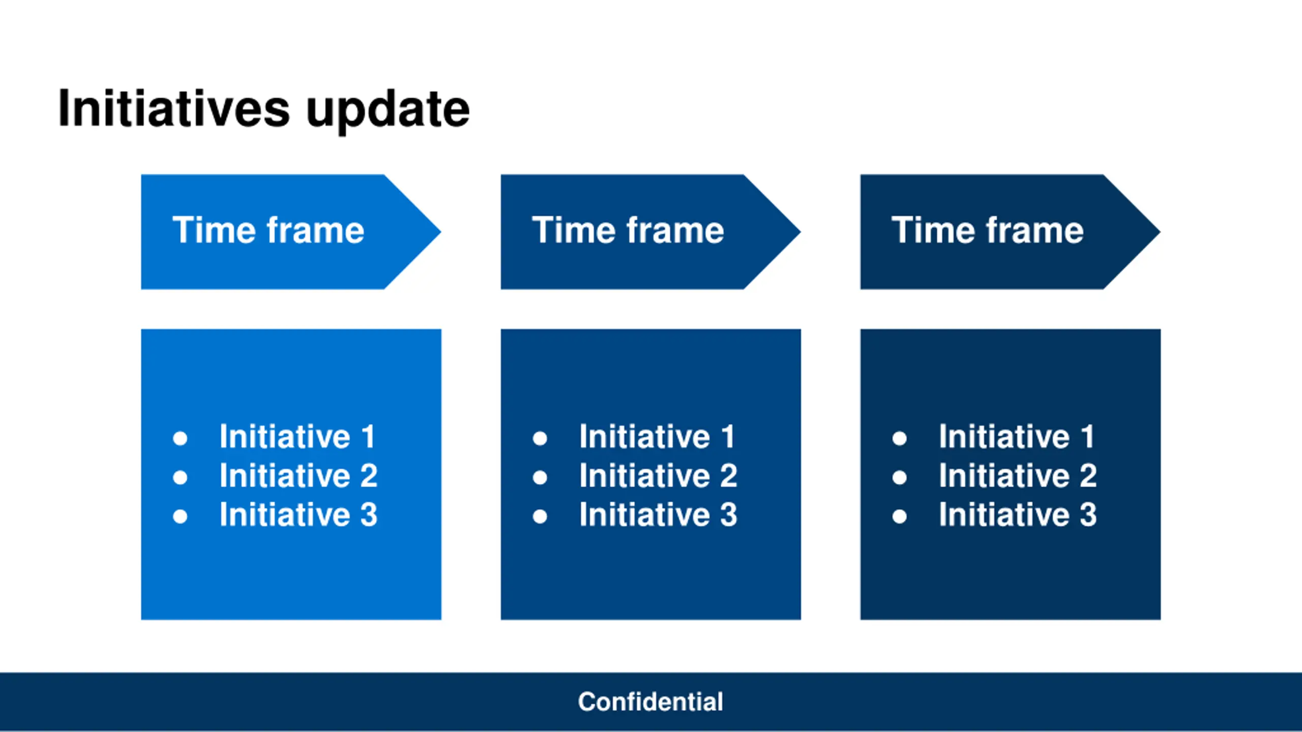Initiatives update Time frame Time frame Time frame Initiative 1 Initiative 2 Initiative 3 Initiative 1 Initiative 2 Initiative 3 Initiative 1 Initiative 2 Initiative 3 Confidential