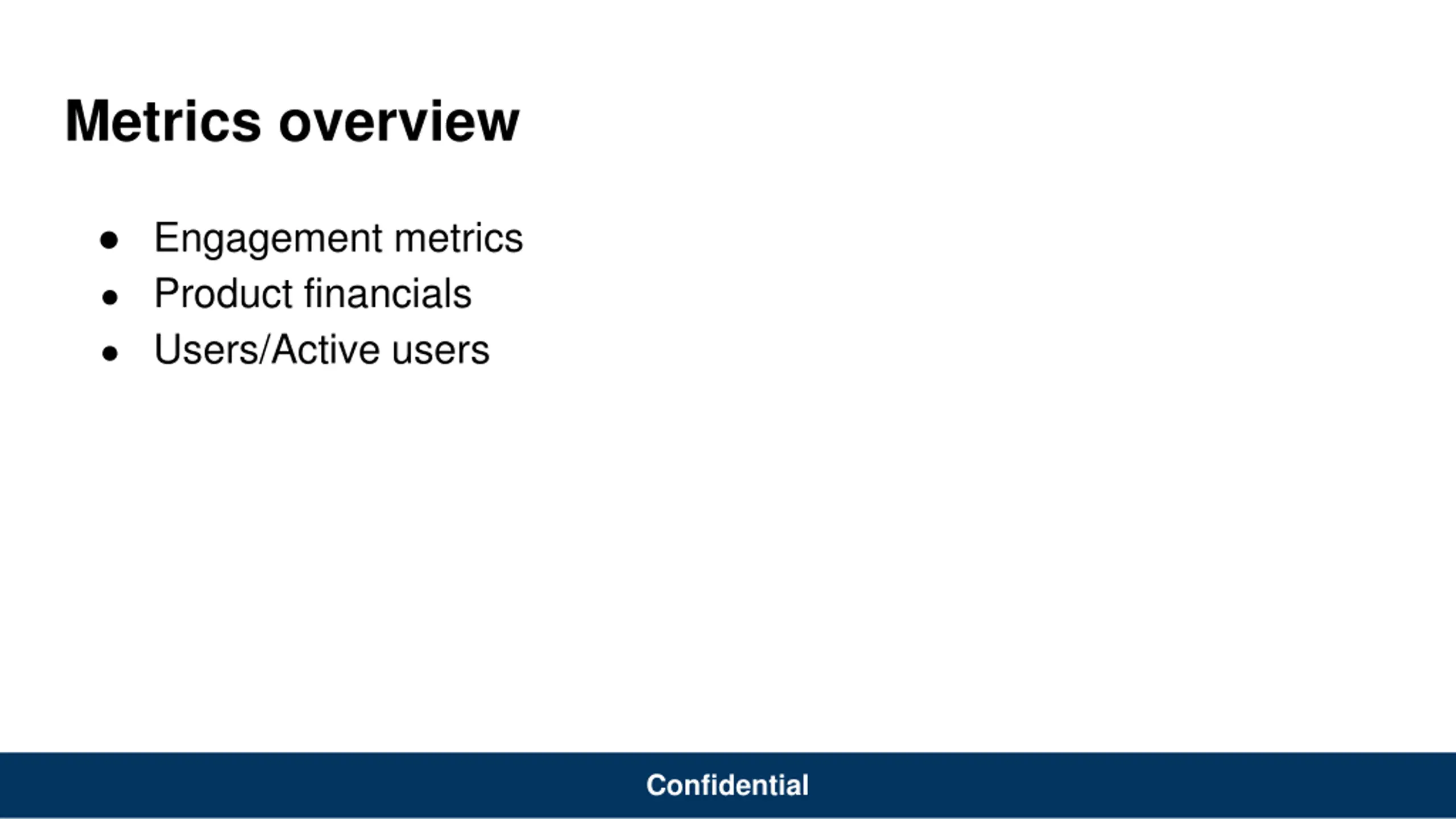 Metrics overview Engagement metrics Product financials Users/Active users Confidential