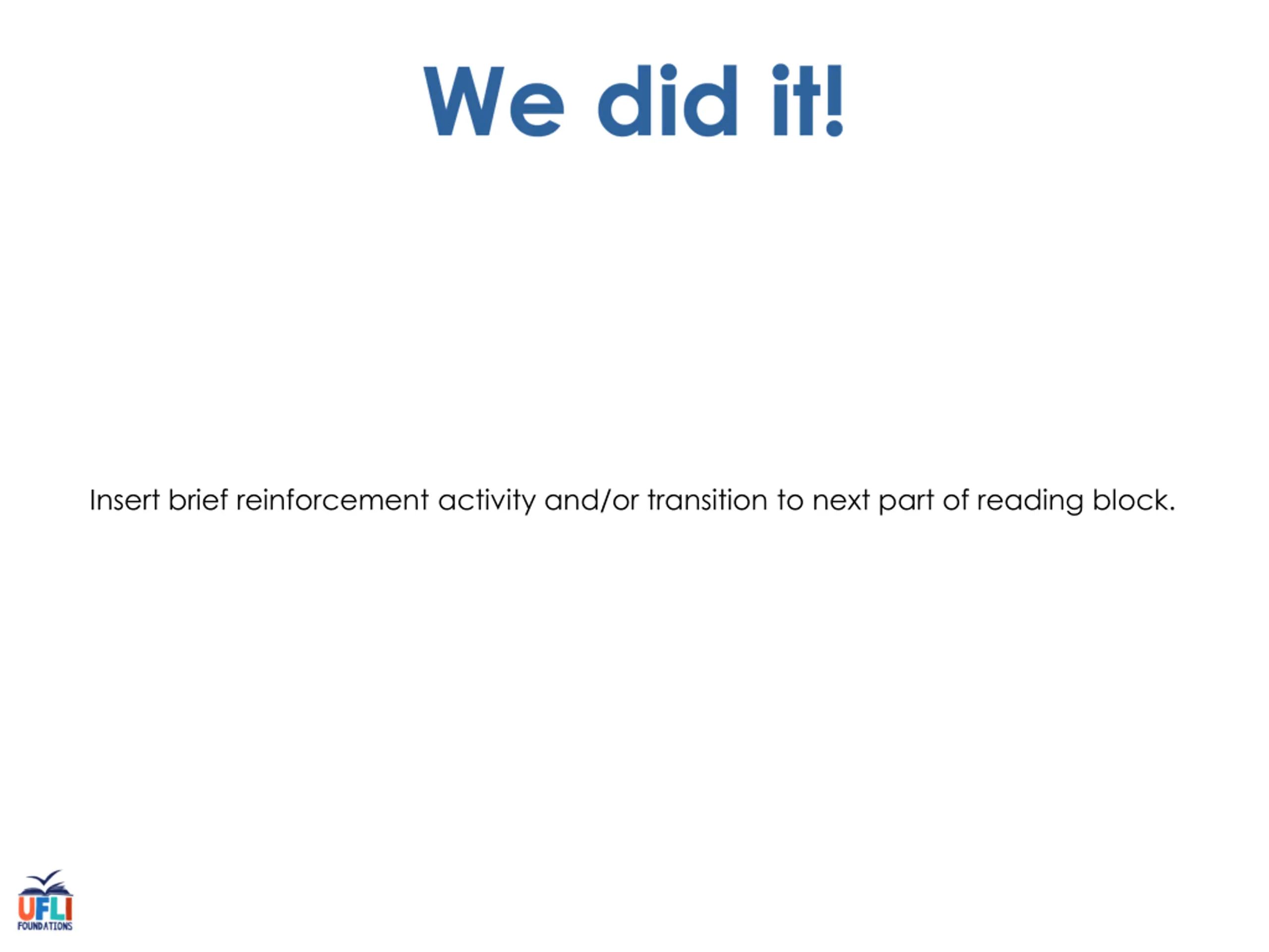 Insert brief reinforcement activity and/or transition to next part of reading block.