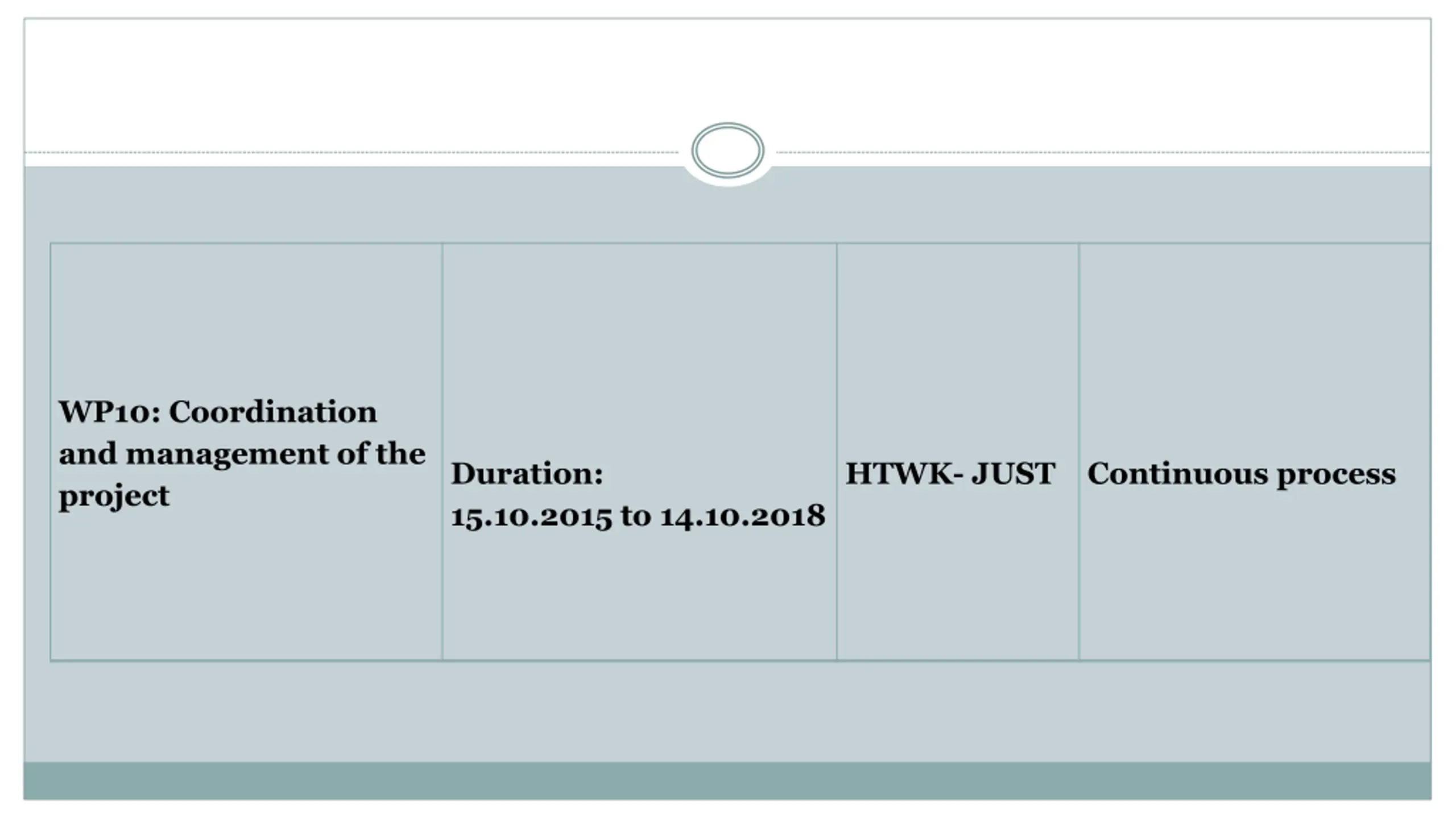 WP10: Coordination and management of the project Duration: 15.10.2015 to 14.10.2018 HTWK- JUST Continuous process