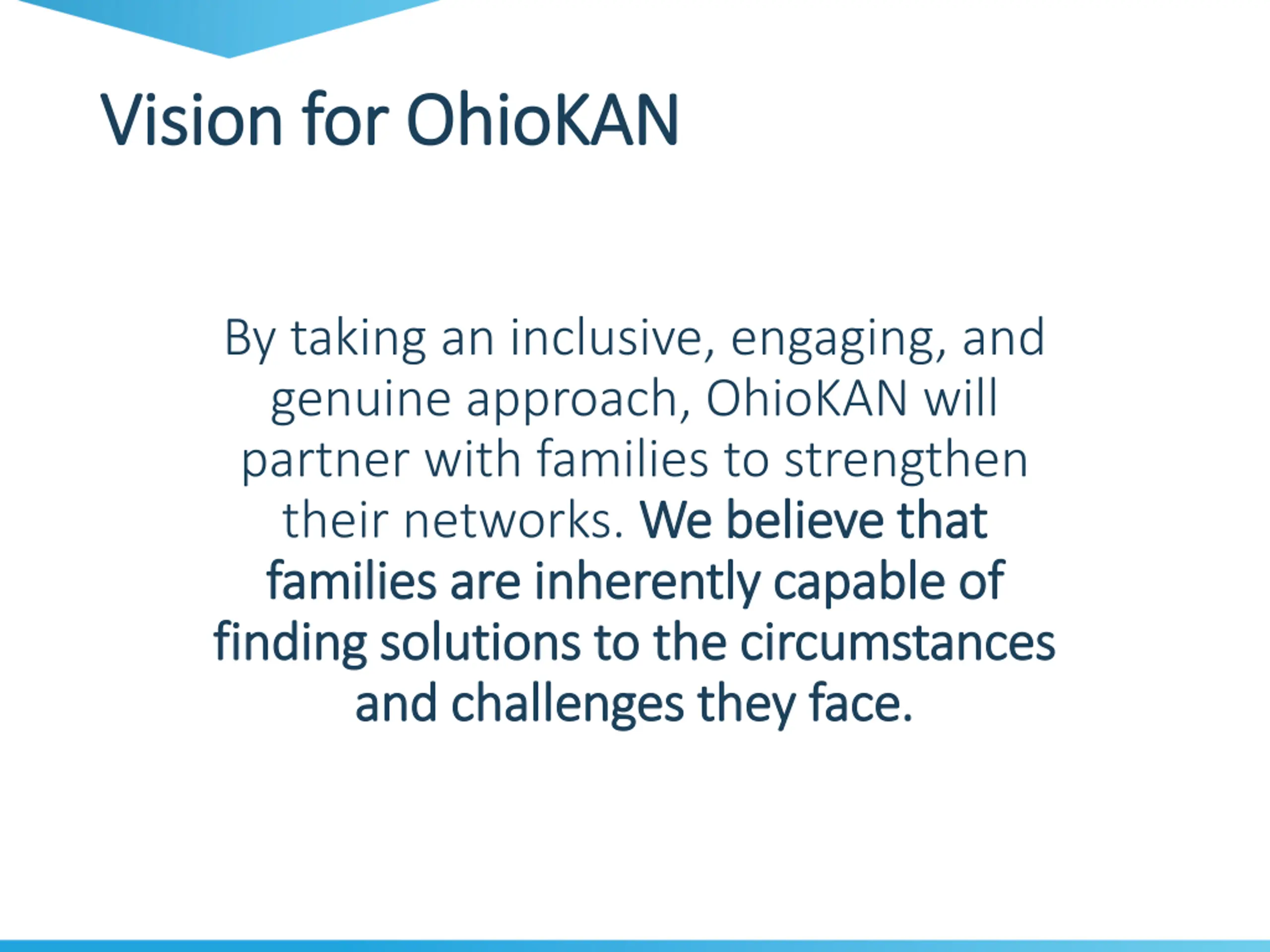 Vision for Vision for OhioKAN OhioKAN By taking an inclusive, engaging, and genuine approach, OhioKAN will partner with families to strengthen their networks. We believe that We believe that families are inherently capable of families are inherently capable of finding solutions to the circumstances finding solutions to the circumstances and challenges they face. and challenges they face.