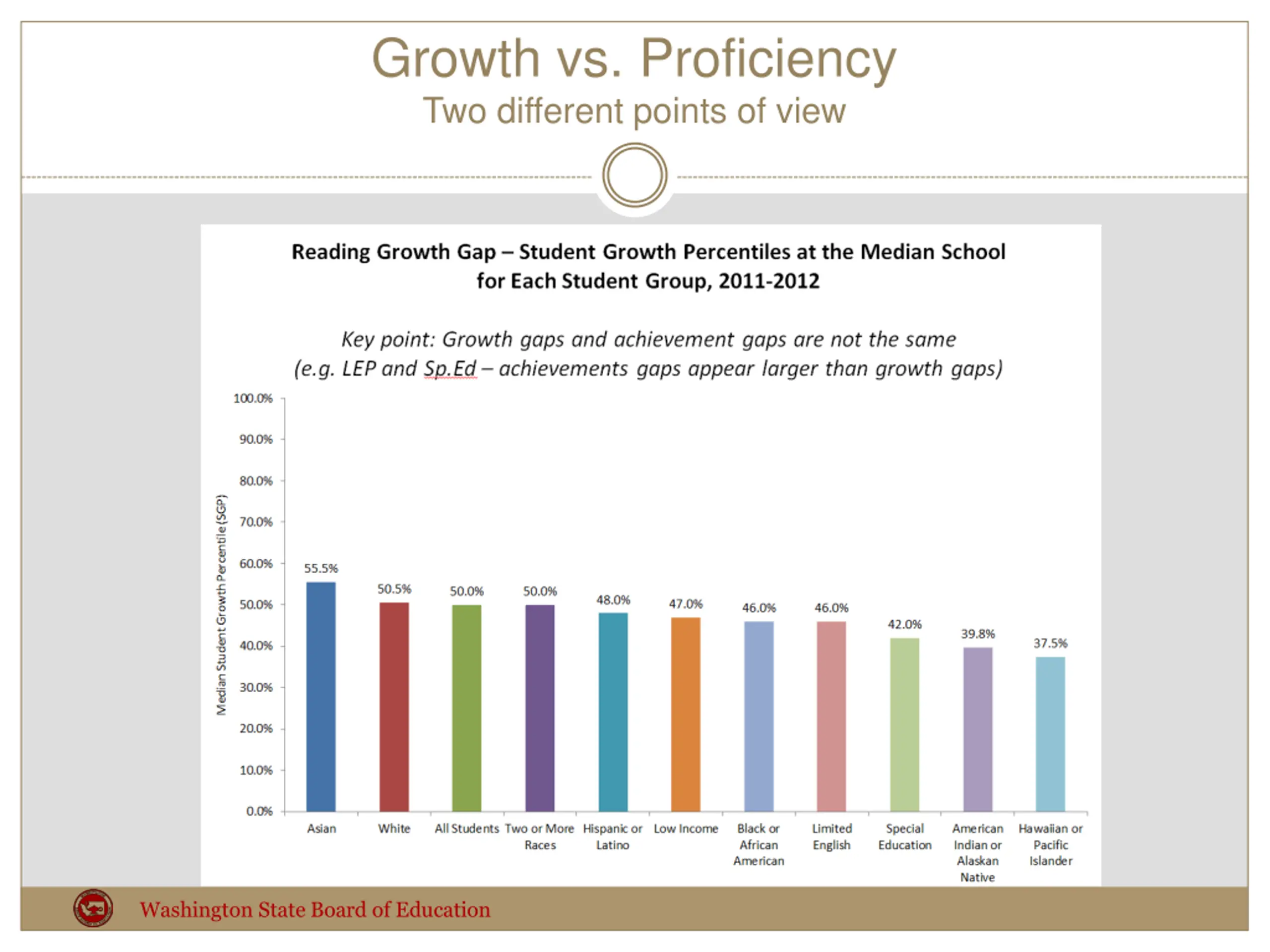 Growth vs. Proficiency Two different points of view Washington State Board of Education