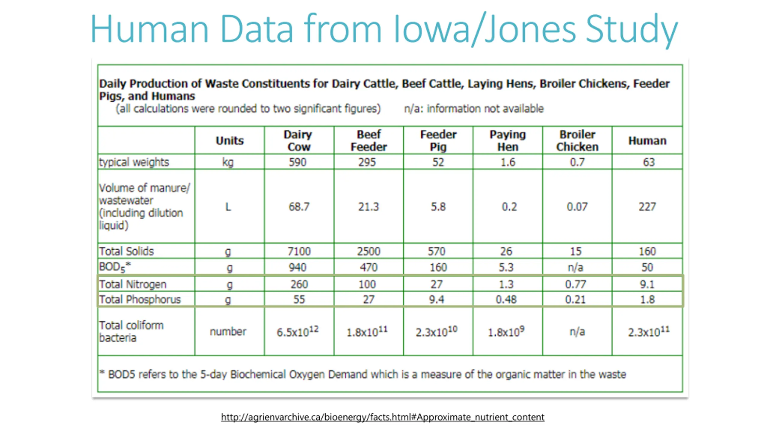 Human Data from Iowa/Jones Study http://agrienvarchive.ca/bioenergy/facts.html#Approximate_nutrient_content