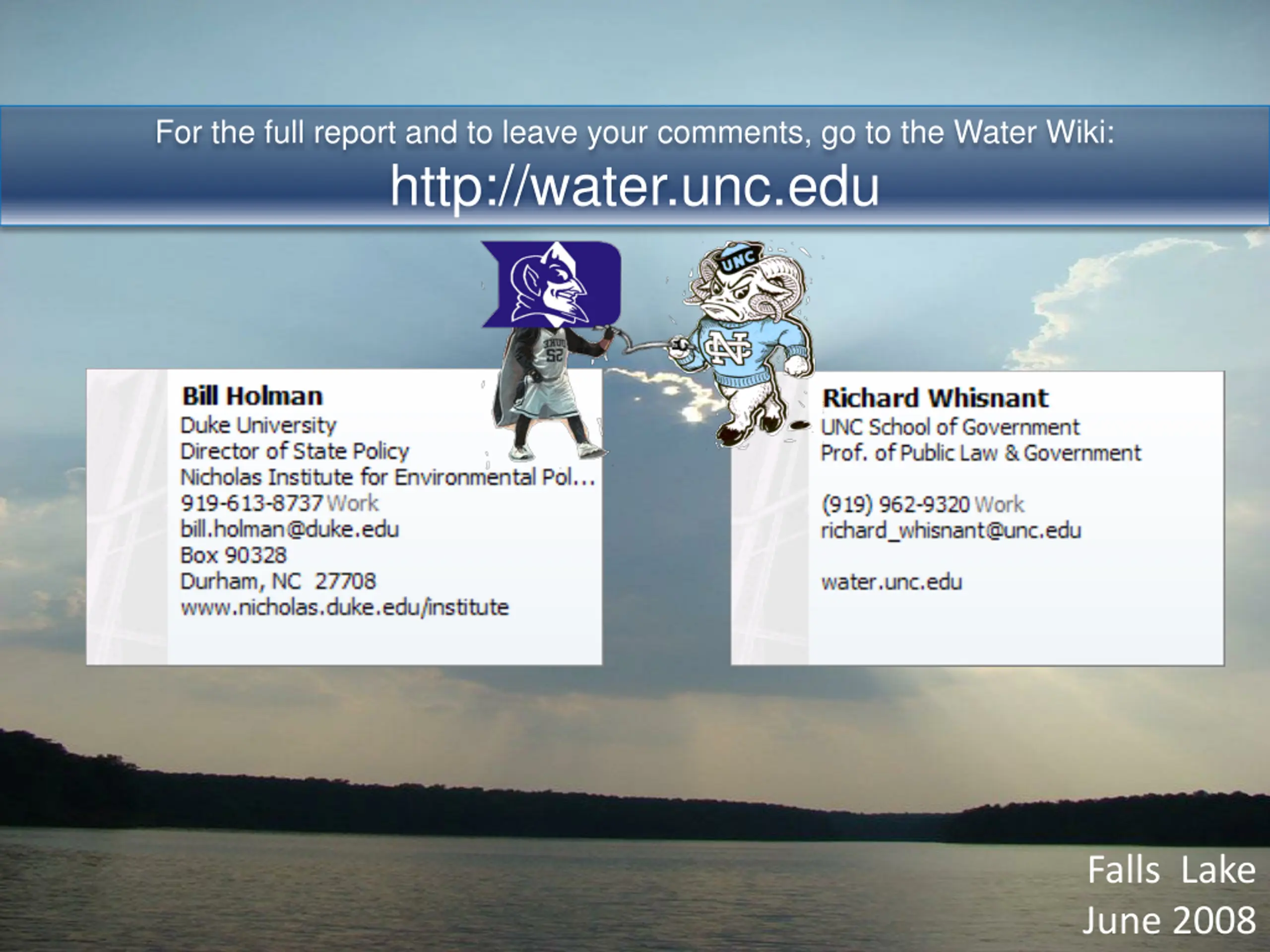For the full report and to leave your comments, go to the Water Wiki: http://water.unc.edu Falls Lake June 2008