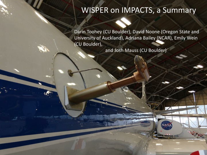 WISPER on IMPACTS, a Summary Darin Toohey (CU Boulder), David Noone (Oregon State and University of Auckland), Adriana Bailey (NCAR), Emily Wein (CU Boulder), and Josh Mauss (CU Boulder)