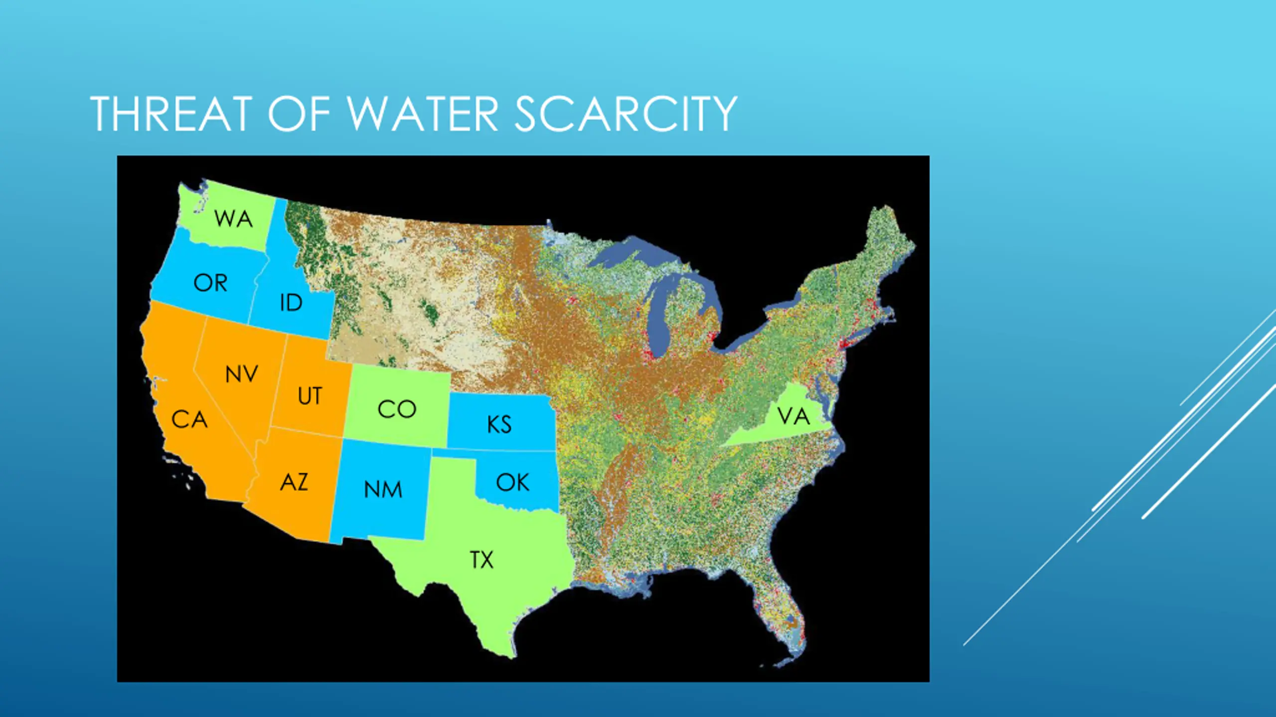THREAT OF WATER SCARCITY WA OR ID NV UT CO VA CA KS AZ OK NM TX