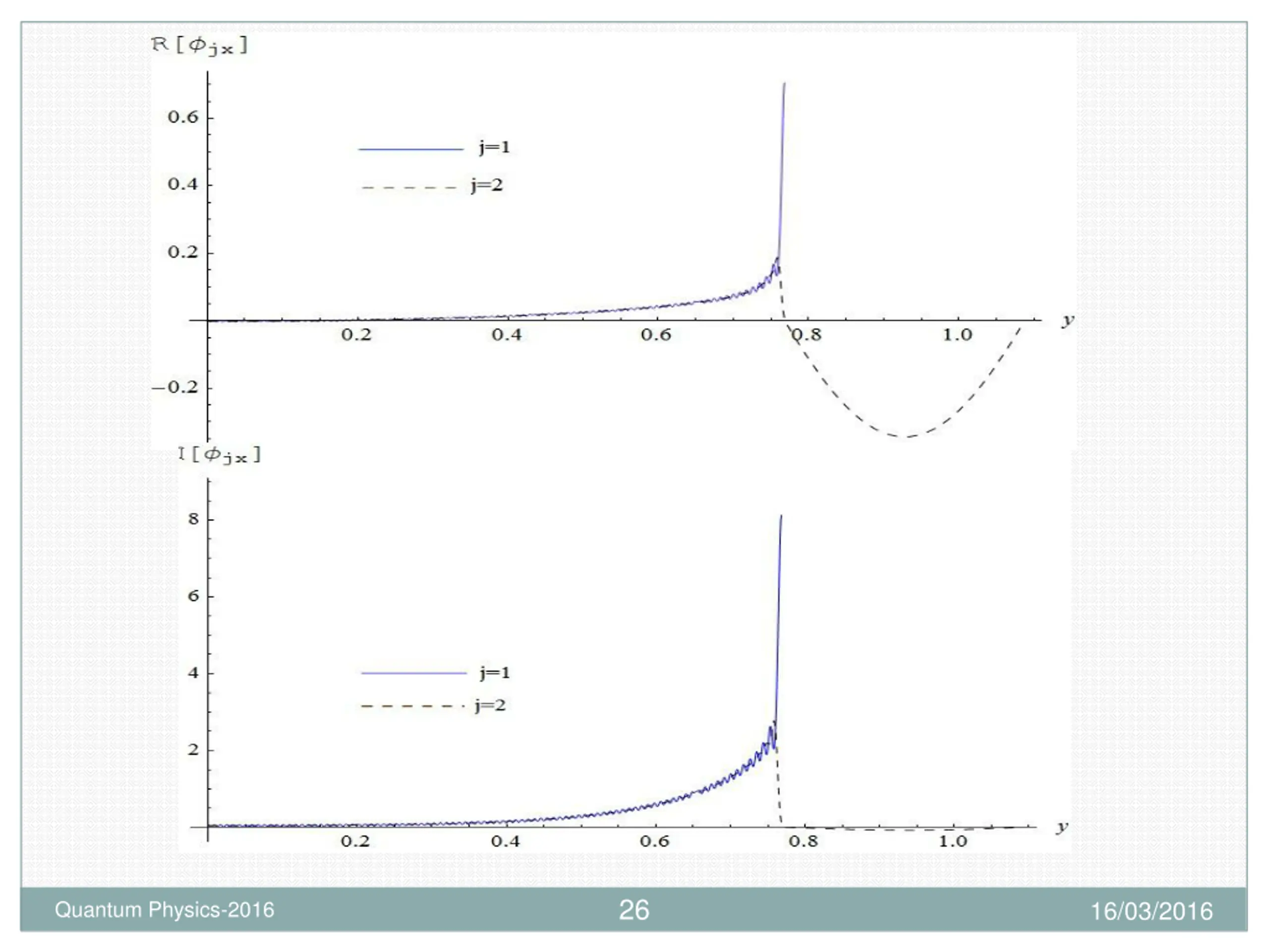 The eigenfunctions Yn y ,n 0,1,2... are linearly dependent a Yn y Cn Yn n 0 0, 0 y a # a Cn 2 Yn n 0 1. # . Green's function can be constructed Yn Yn y Cn n 0 y y y 2a ,0 ,y a, # J. B. Lawrie, On eigenfunction expansions associated with wave propagation along ducts with wave- bearing boundaries. IMA.J. Appl. Math, 72,376-394 (2007). 10 16/03/2016 Quantum Physics-2016