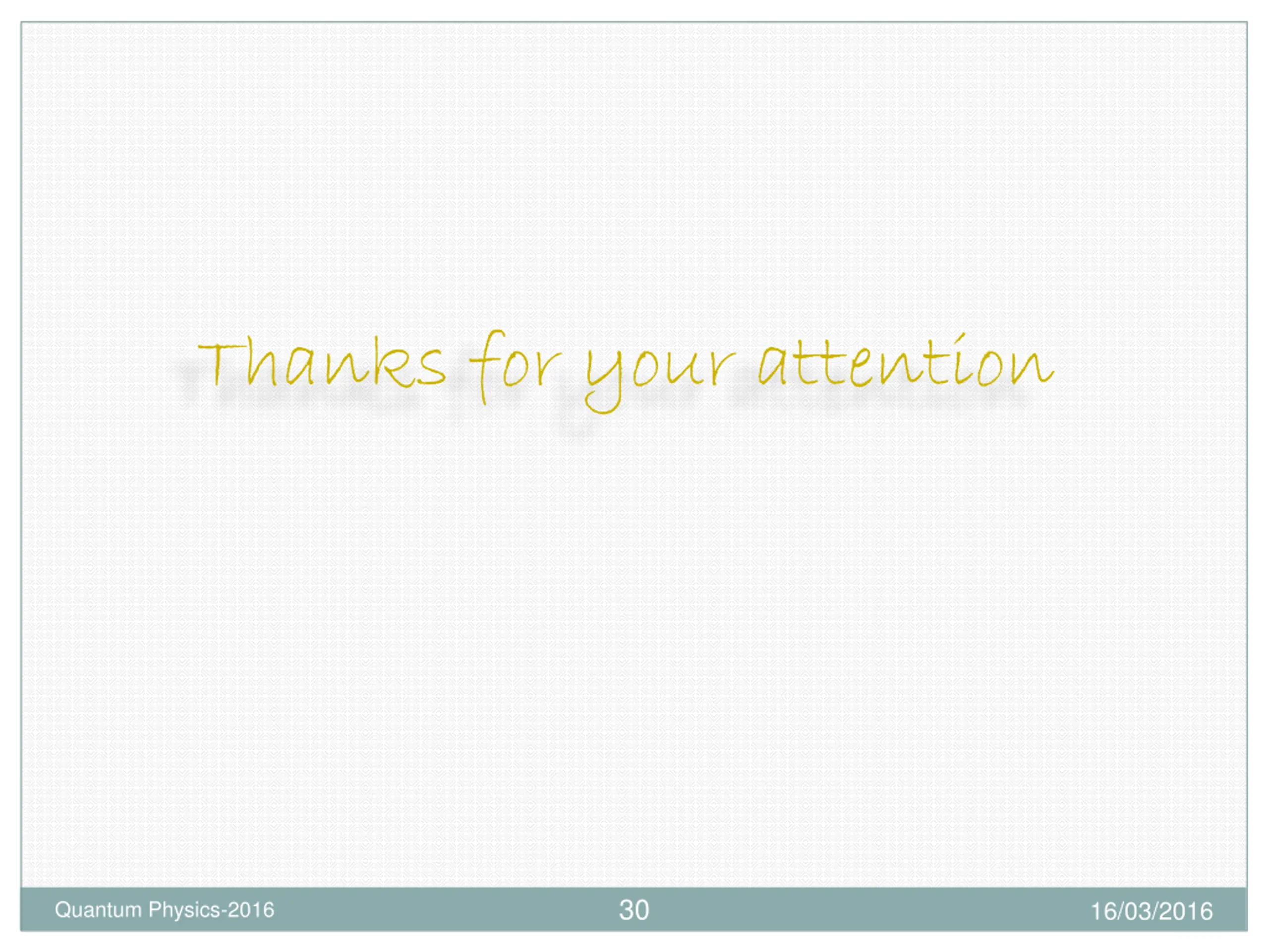 Thanks for your attention 30 16/03/2016 Quantum Physics-2016