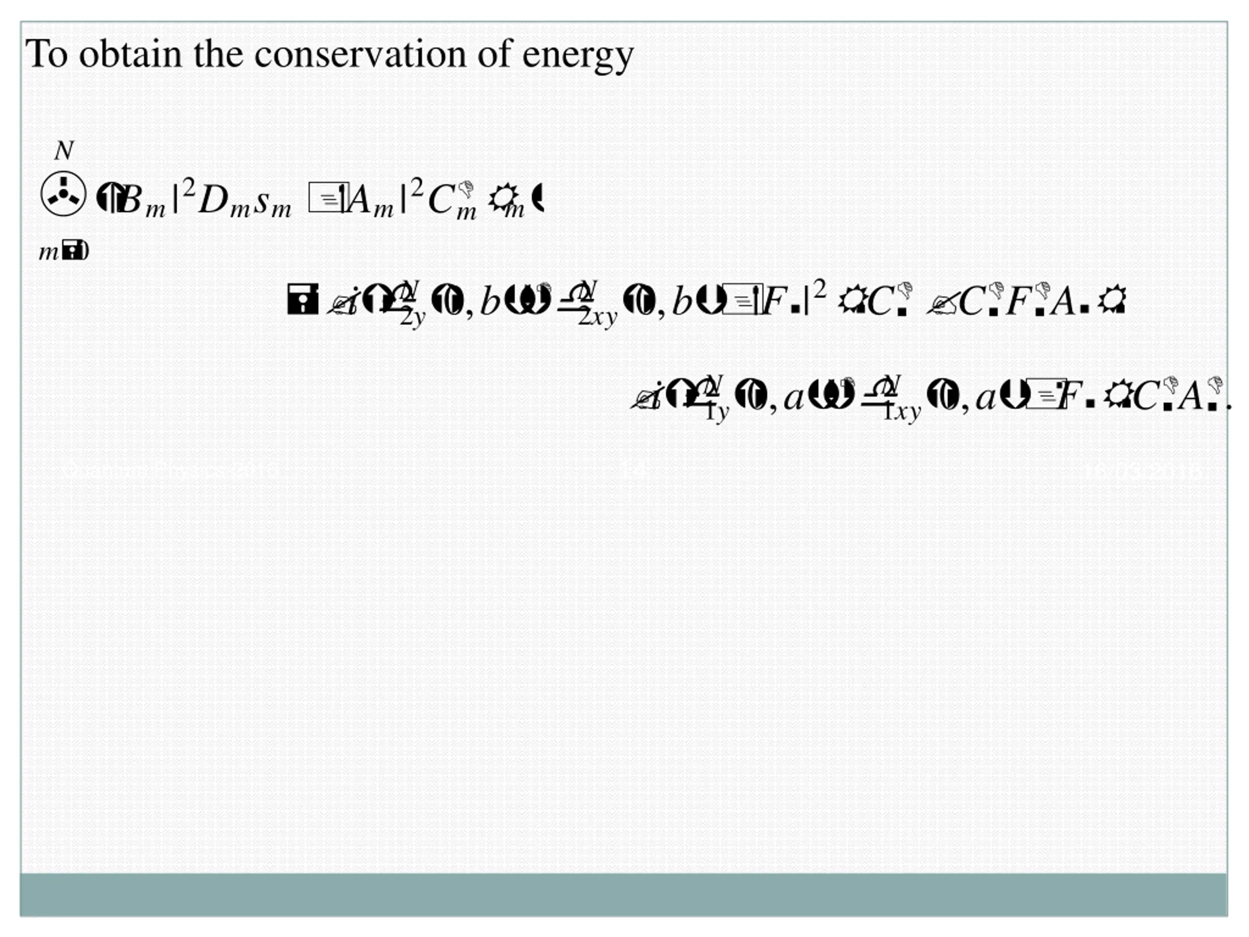 To obtain the conservation of energy N m 0 |Bm|2Dmsm |Am|2Cm m N 0,b |F |2 C N 0,b 2xy C F A i 2y N 0,a 1xy N 0,a F C A . i 1y 14 16/03/2016 Quantum Physics-2016