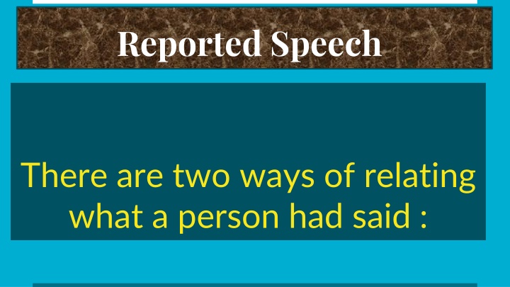 There are two ways to relate what a person said: Direct Speech where the exact words are repeated, and Indirect Speech where the words are reported. Learn how to change reported speech from direct to indirect by adjusting pronouns, time expressions, and verb tenses with helpful examples.